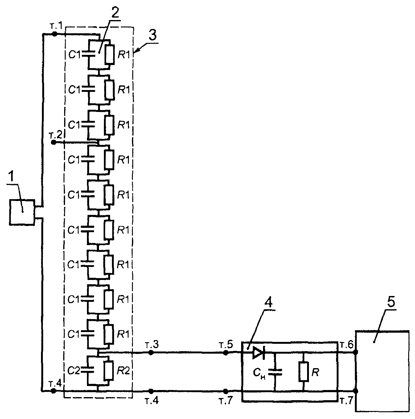Б.5.4.2. Отсчет напряжения, возникающего на низковольтном плече ДВИ, производят по вольтметру. Длительность непрерывной работы ЭШУ - не более 3 с. Отсчет производят при успокоении светового "зайчика" на шкале вольтметра. Проводят два измерения при подключении к т. 1 - т. 4 делителя разных электродов ЭШУ. При получении максимального значения (в одном из положений) проводят не менее трех включений ЭШУ с паузой (5 - 10 мин), необходимой для восстановления штатного источника питания.