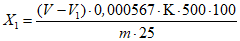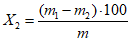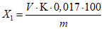 Массовую долю (X2) в процентах вычисляют по формуле