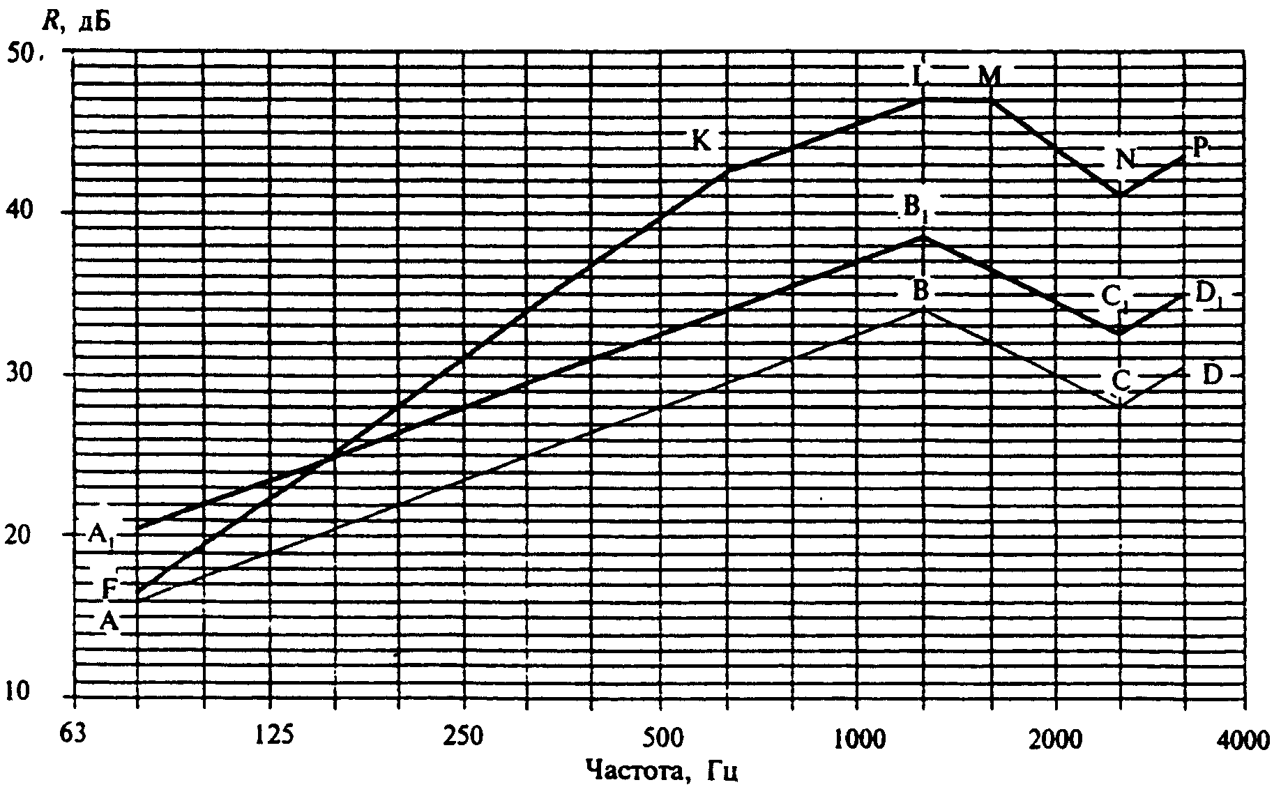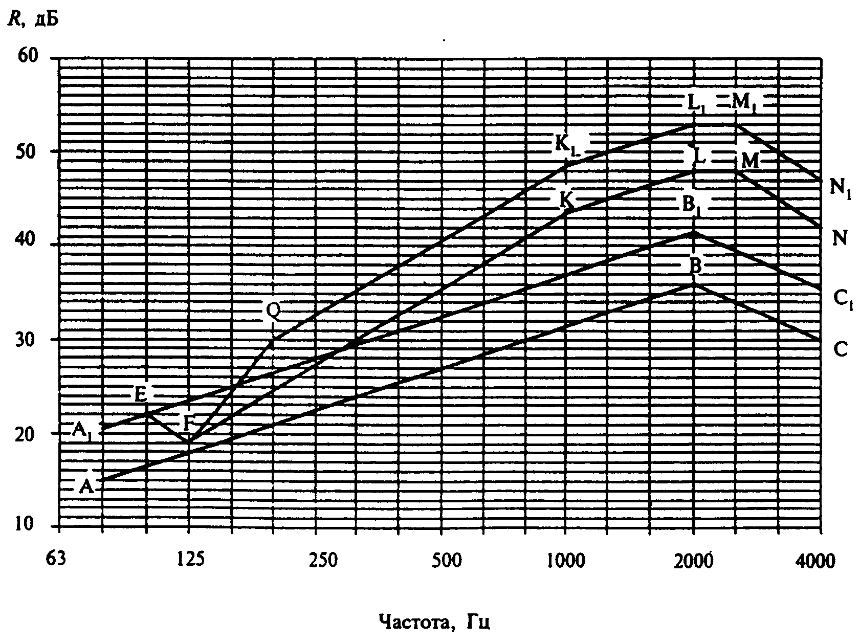 1.2. Нормативные значения индексов изоляции воздушного шума внутренними ограждающими конструкциями