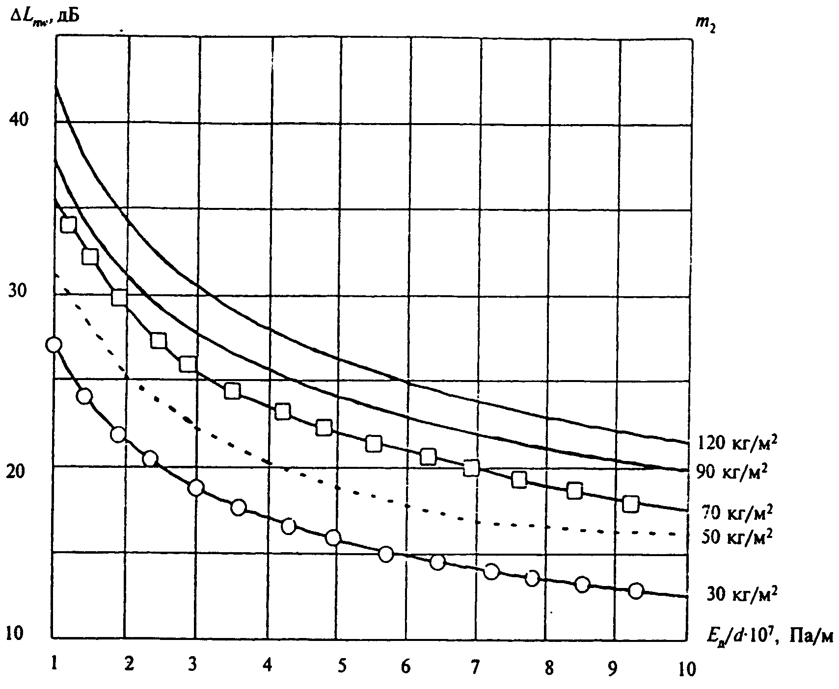 = 57 - 62 дБ), разделяющие жилые и встроенные шумные помещения, следует проектировать, как правило, с использованием плит из монолитного железобетона достаточной толщины (например, каркасно-монолитная или монолитная конструкция первого этажа). Достаточность звукоизоляции такой конструкции определяется расчетом.