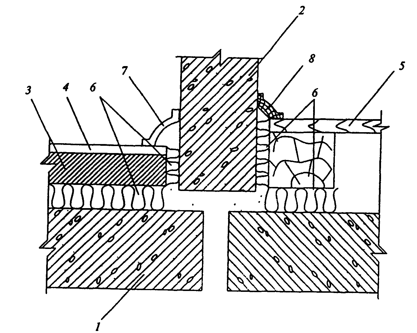 1 - несущая часть междуэтажного перекрытия; 2 - стена;