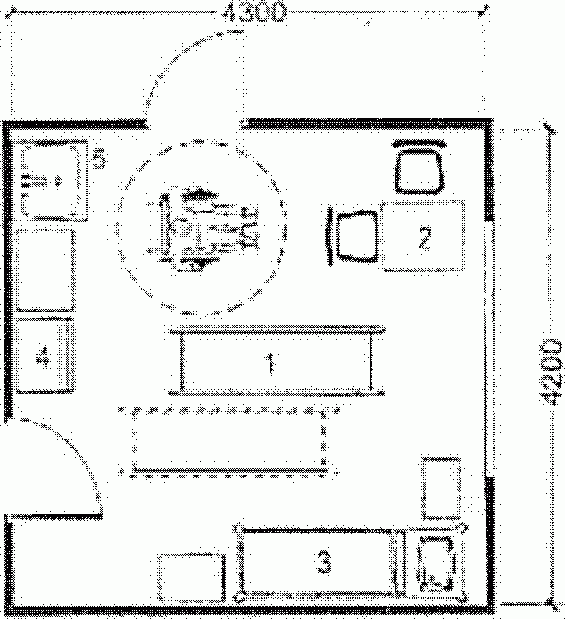 Параметры комнаты отдыха - кухни с местом приема пищи должны определяться с учетом удобного пользования инвалидами на кресле-коляске.
