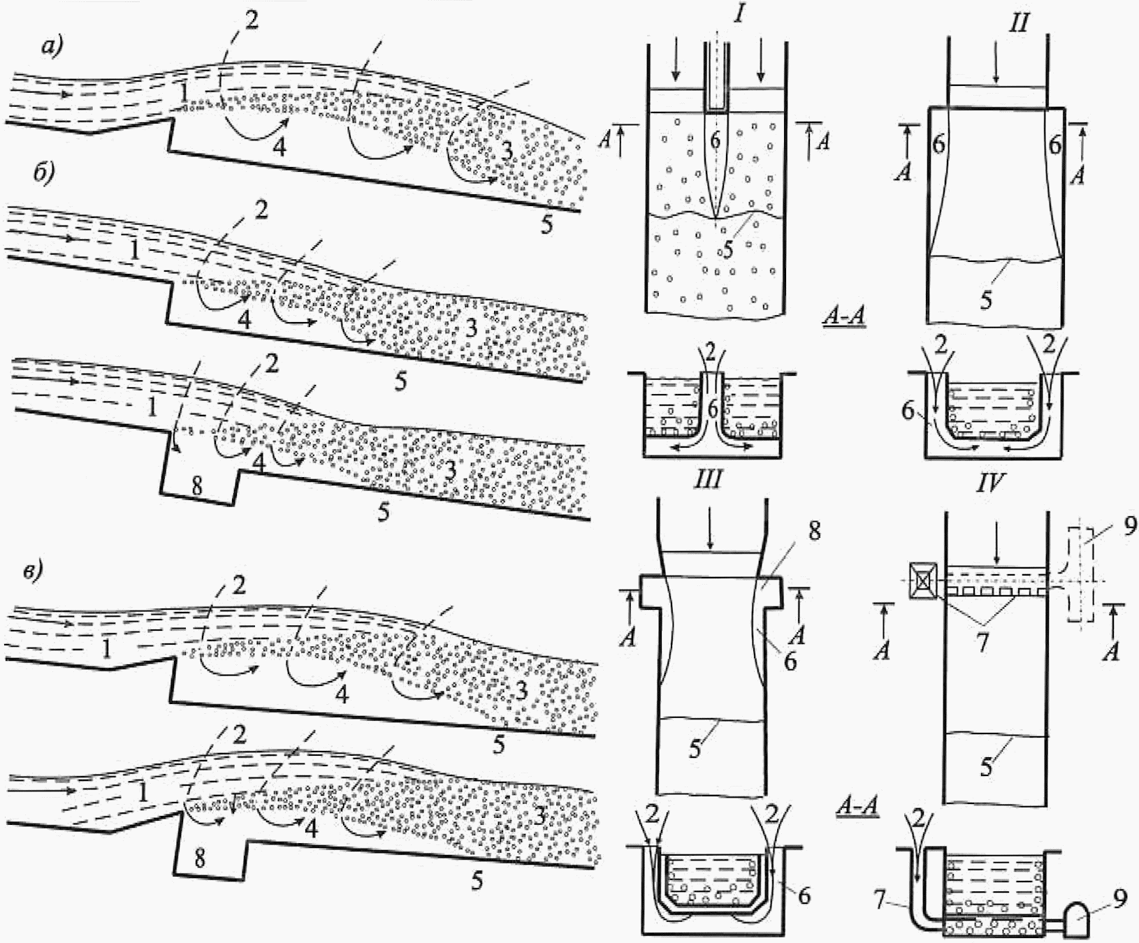 (рисунок 55 в). При этом в последнем случае необходимо учитывать возможность подтопления входного участка со стороны нижнего бьефа.