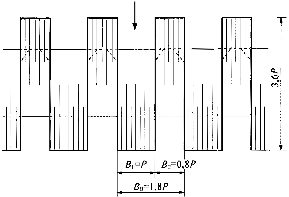 г) рисунка 49 пропуск строительных расходов II очереди производится через гребенку, когда в котловане за перемычками I очереди уже возведены основание (флютбет) водосбросной плотины и быки, разделяющие ее на пролеты, перекрываемые затворами (рисунок 56). После разборки перемычек пропуск воды должен осуществляться через часть пролетов; в остальных пролетах под прикрытием затворов необходимо вести укладку бетона на промежуточную высоту, затем пропуск расходов следует переключать на пролеты с поднятым порогом, а укладку бетона под прикрытием затворов производить в следующей группе пролетов.