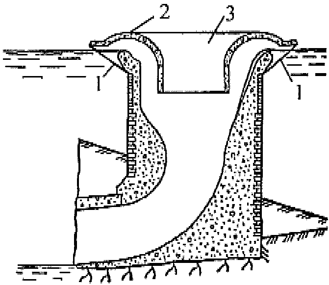 При переливе через недостроенные секции необходимо по возможности обеспечить обтекание гребня и низовой грани плотины, предотвращающее опасные кавитационные повреждения. Для этого переход от горизонтальной площадки на гребне к низовой наклонной грани следует выполнять криволинейным или ступенчатым. Для уменьшения пульсации переливающейся через уступы или переломы струи следует обеспечить устойчивый подвод к ним воздуха.