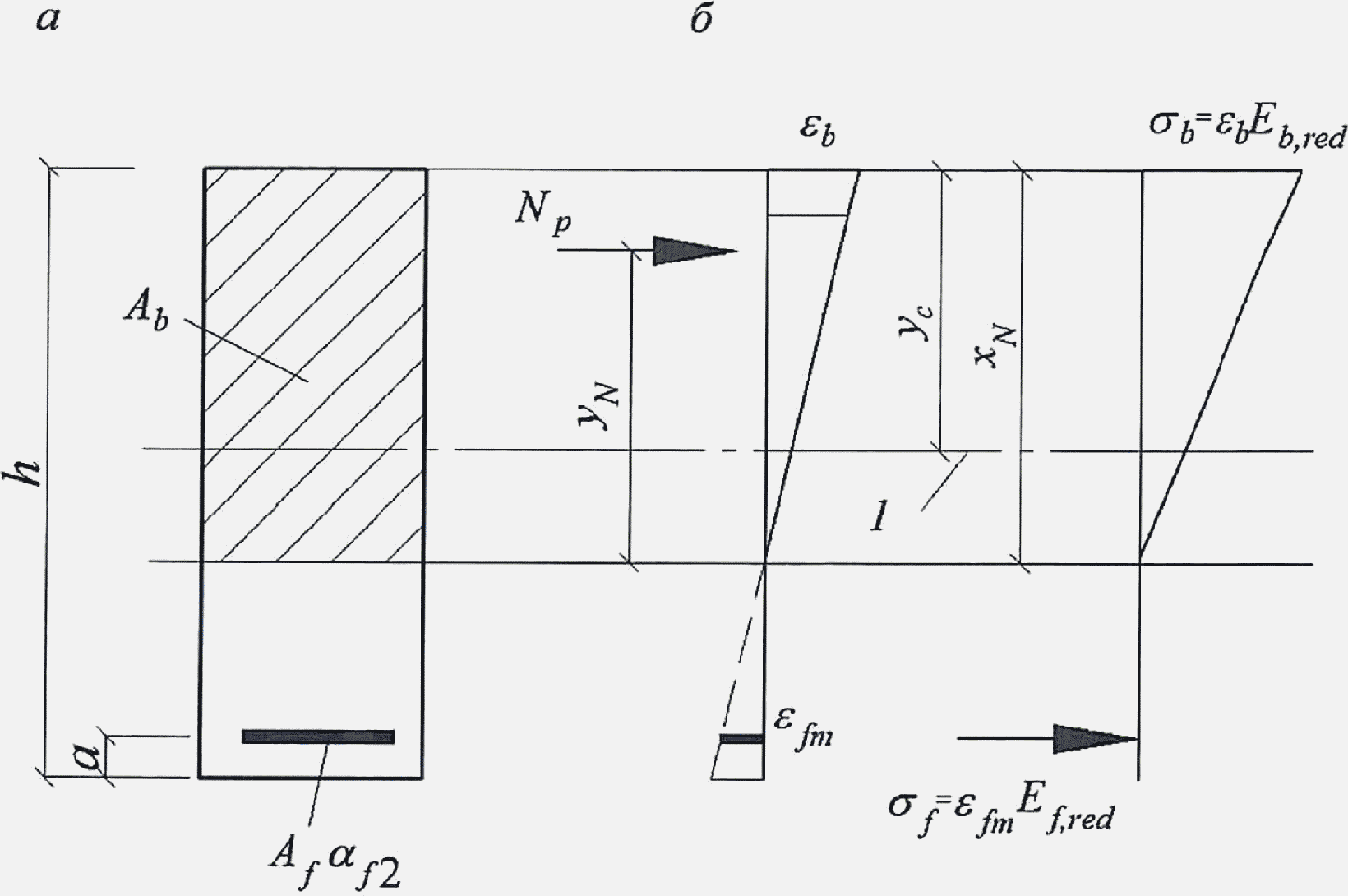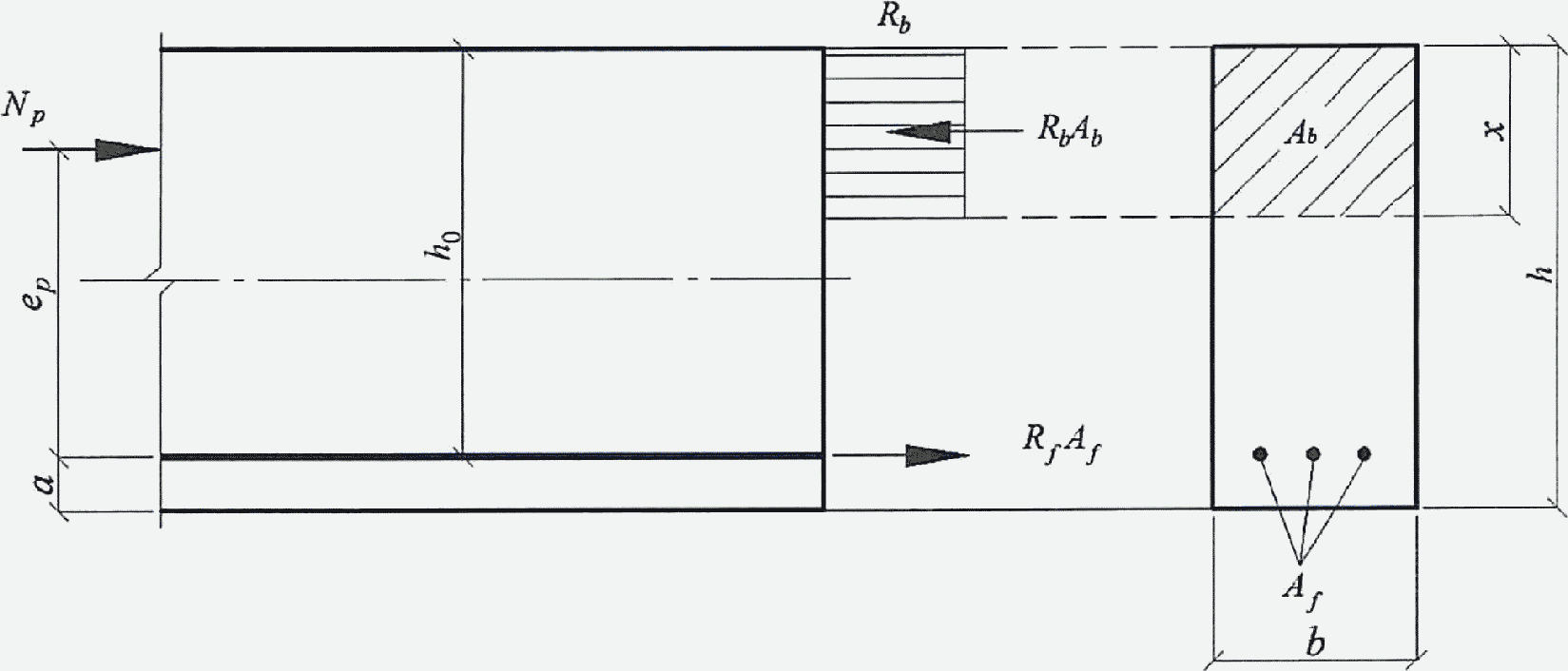 ep | - | расстояние от точки приложения усилия предварительного обжатия Np с учетом изгибающего момента от внешней нагрузки до центра тяжести растянутой или наименее сжатой арматуры; |