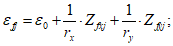 | - | относительные деформации композитной полимерной арматуры при напряжении, равном Rf; |