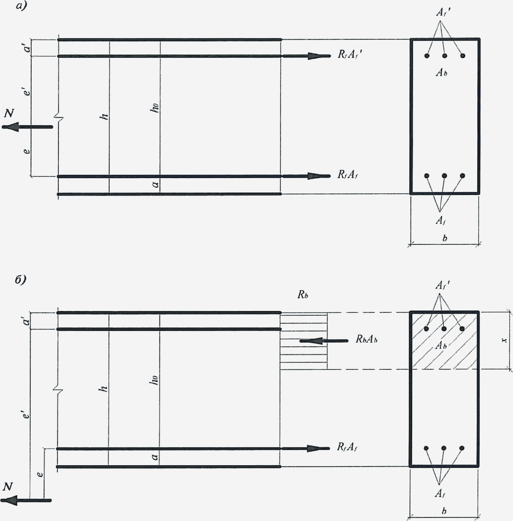 a, a' | - | расстояние от равнодействующей усилий в арматуре до ближайшей грани сечения; |