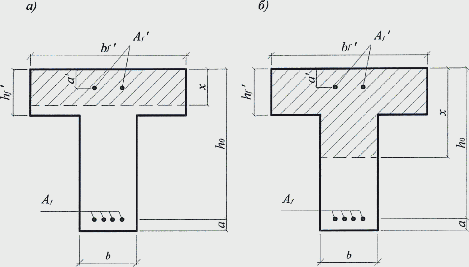 bf, b'f | - | ширина полки таврового и двутаврового сечений соответственно в растянутой и сжатой зонах; |