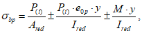 Mp | - | изгибающий момент с учетом момента усилия предварительного обжатия относительно центра тяжести приведенного сечения; |
