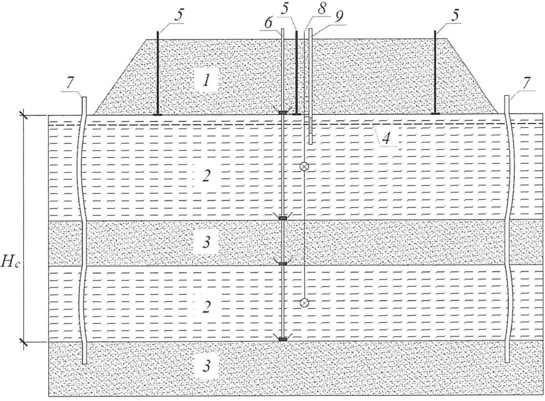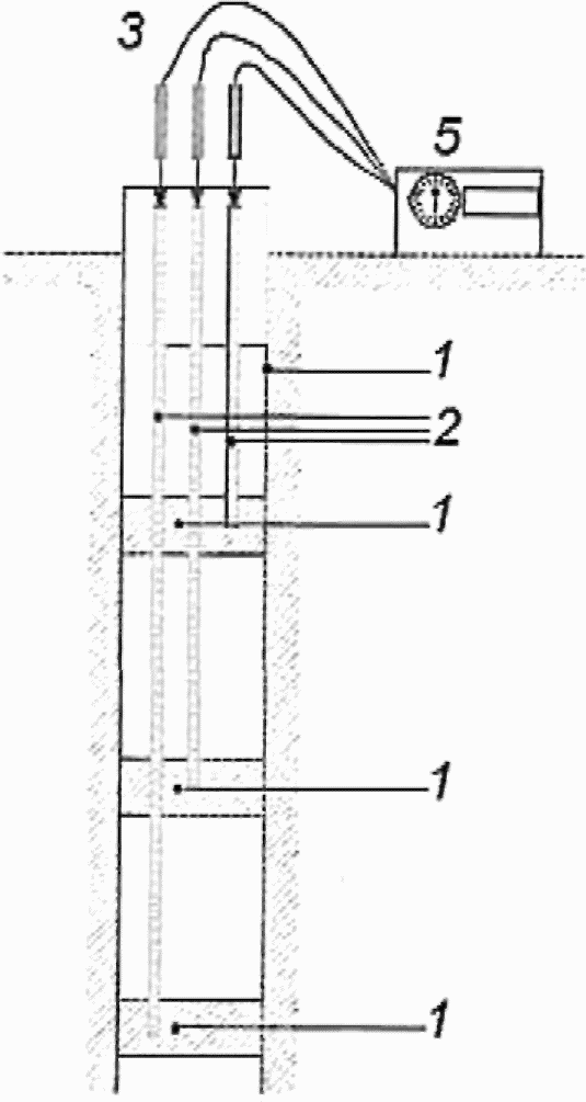 <1>, <2>, <3> Выполняют при геотехническом мониторинге соответственно: конструкции ограждения котлована; грунтового массива, окружающего вновь возводимого здания и сооружения или при реконструкции существующих объектов; подземных инженерных коммуникаций, расположенных в зоне влияния нового строительства. |