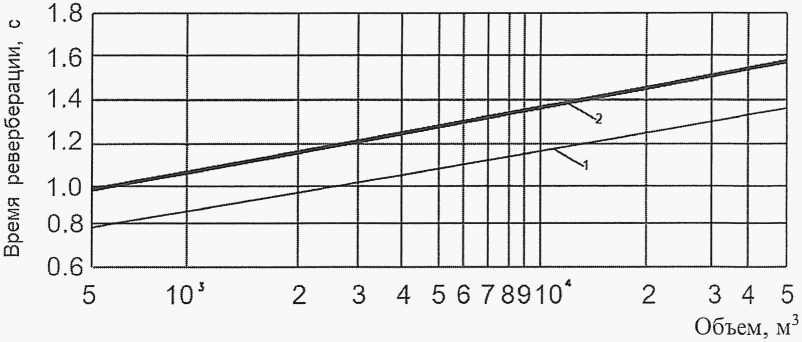 рисунка 13.1. На частотах ниже 500 Гц время реверберации допускается увеличивать на 15% - 20%.