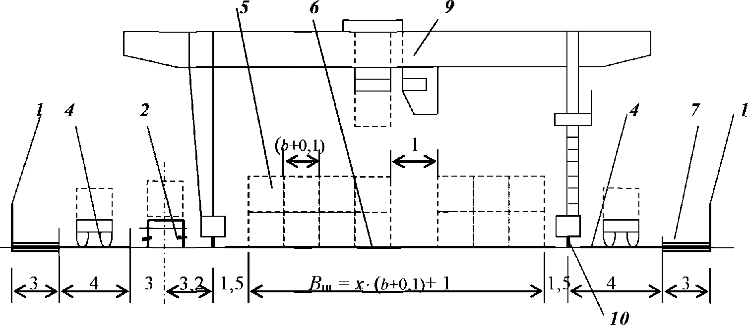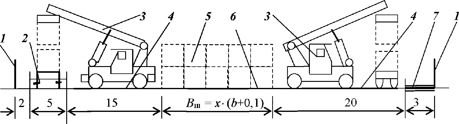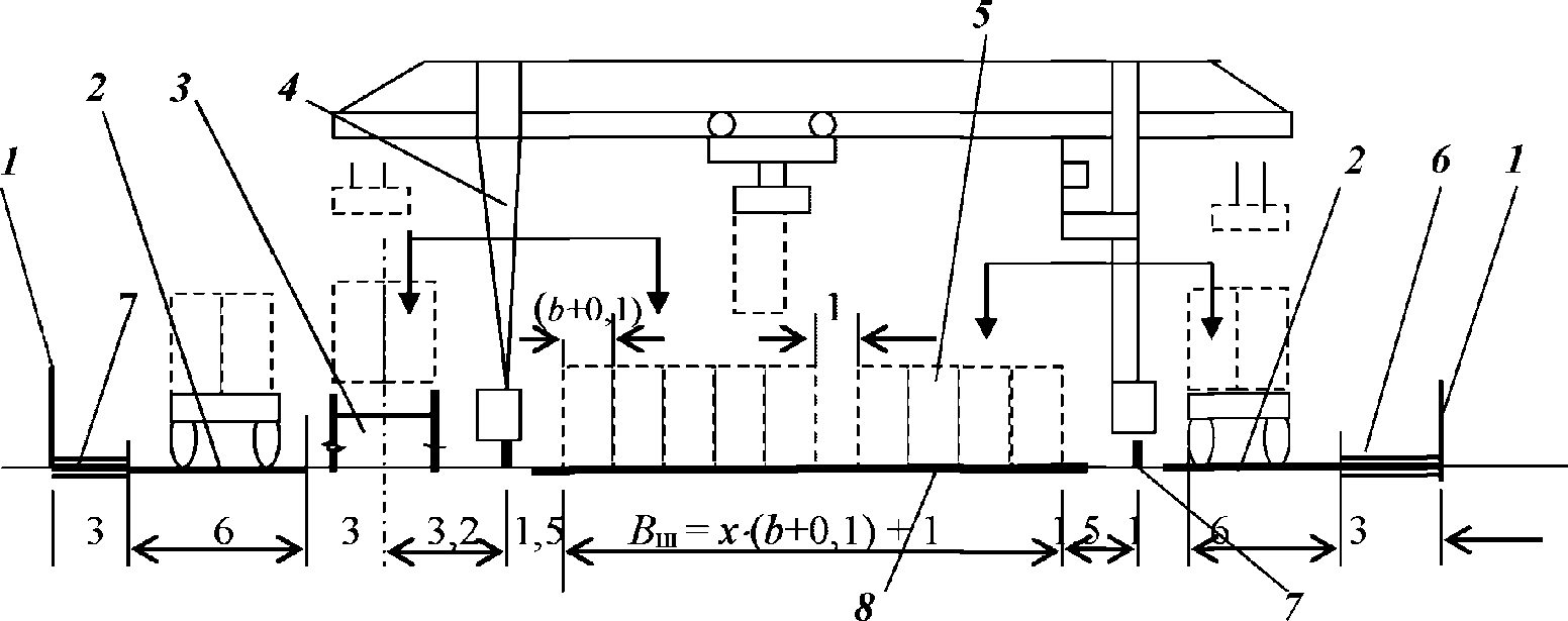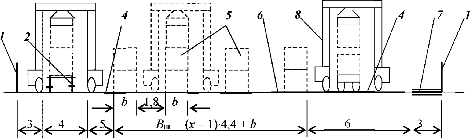 Nпер - коэффициент переработки контейнеров, учитывающий многократную перестановку контейнеров на площадке (принимается в пределах от минимального количества перегрузок-разгрузок и погрузок - Nпер = 2 до Nпер = 5 - 6 - при нескольких промежуточных перестановках, для того чтобы добраться до нужного контейнера в штабеле; в среднем принимают Nпер = 2 - 4 перегрузок);