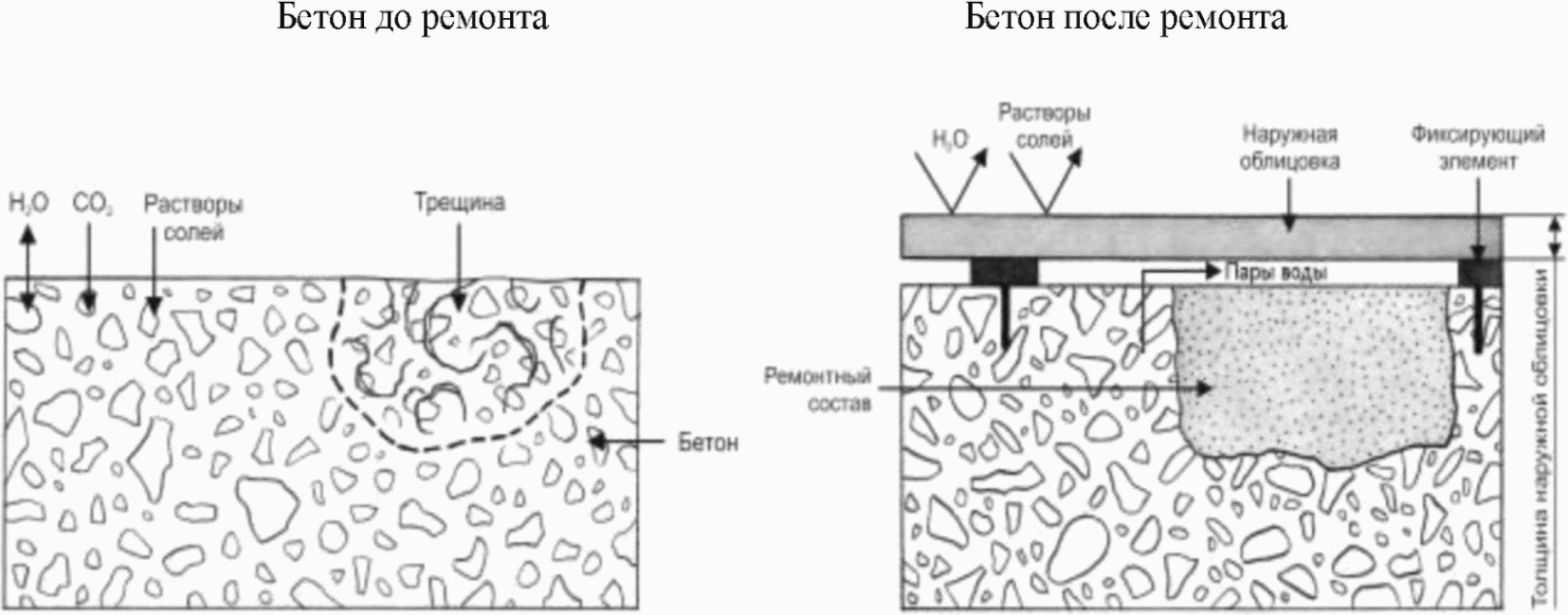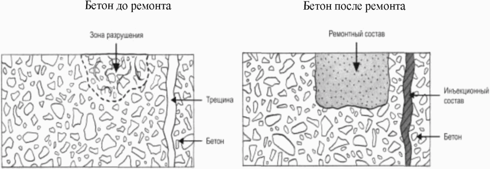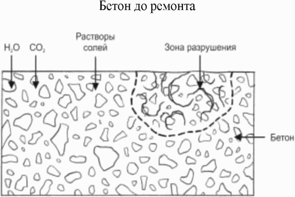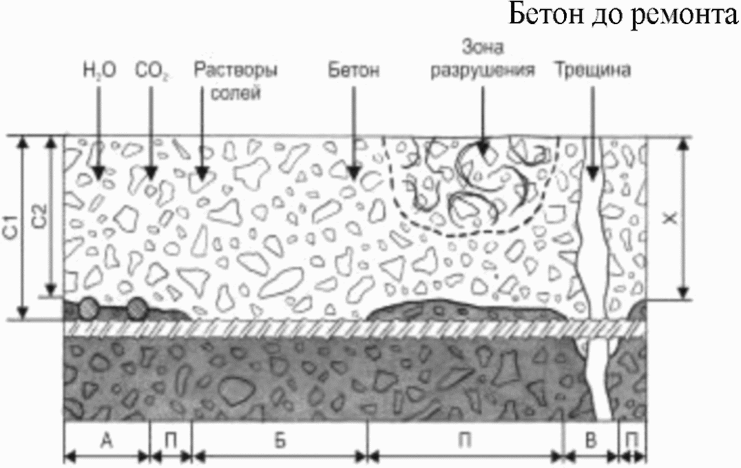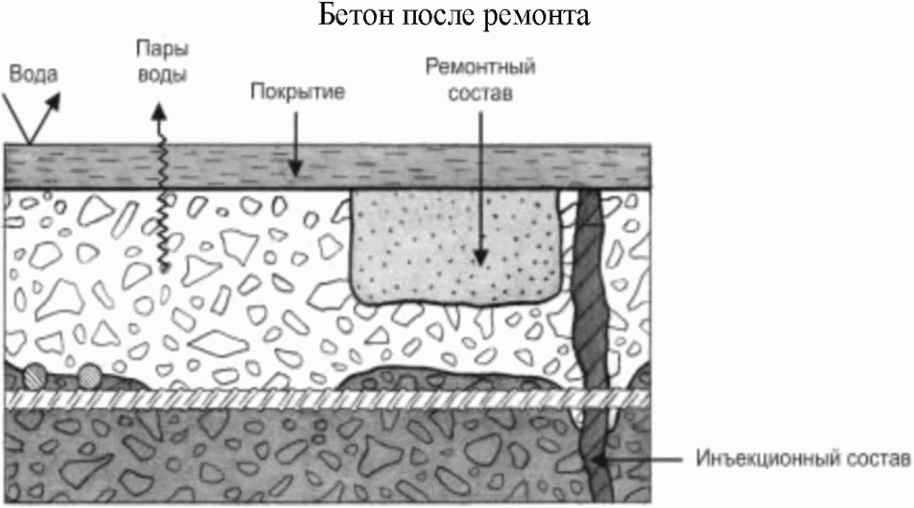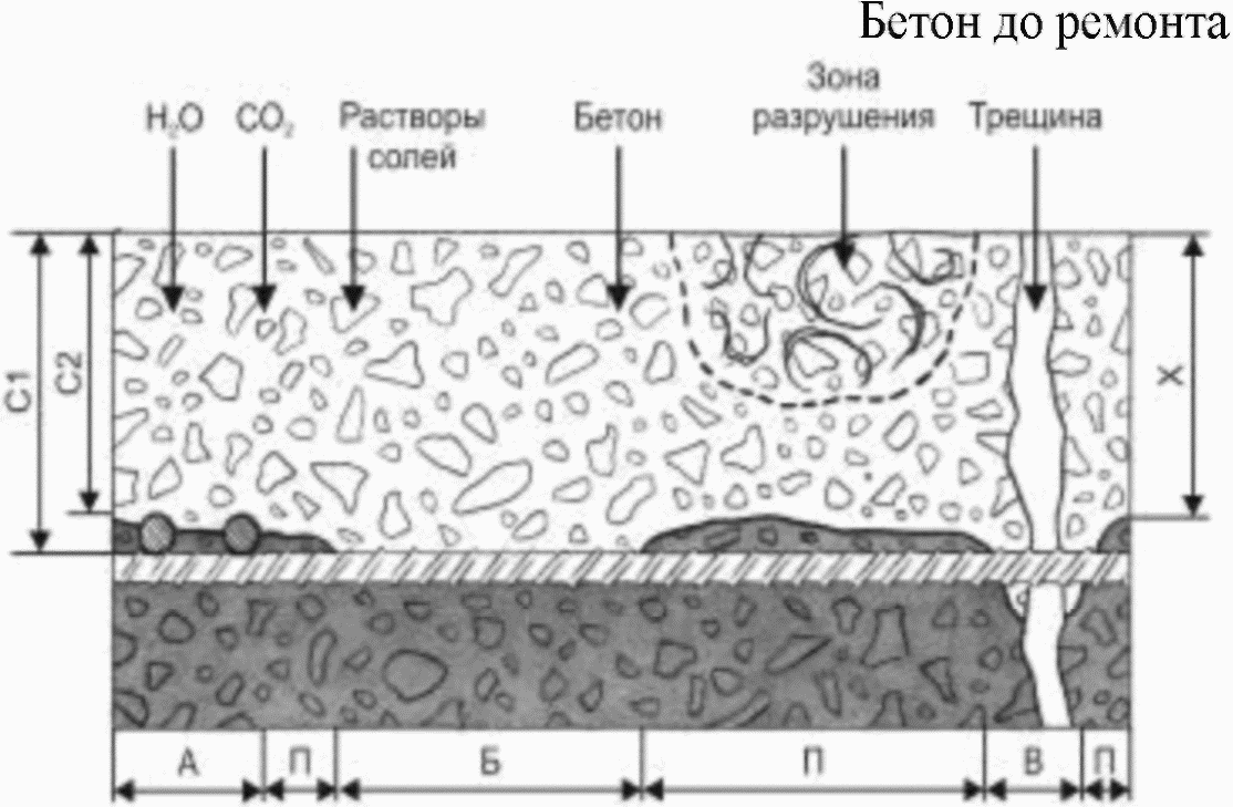 рисунке И.2. На участках с разрушенным бетоном выполняется его восстановление и уплотнение трещин.