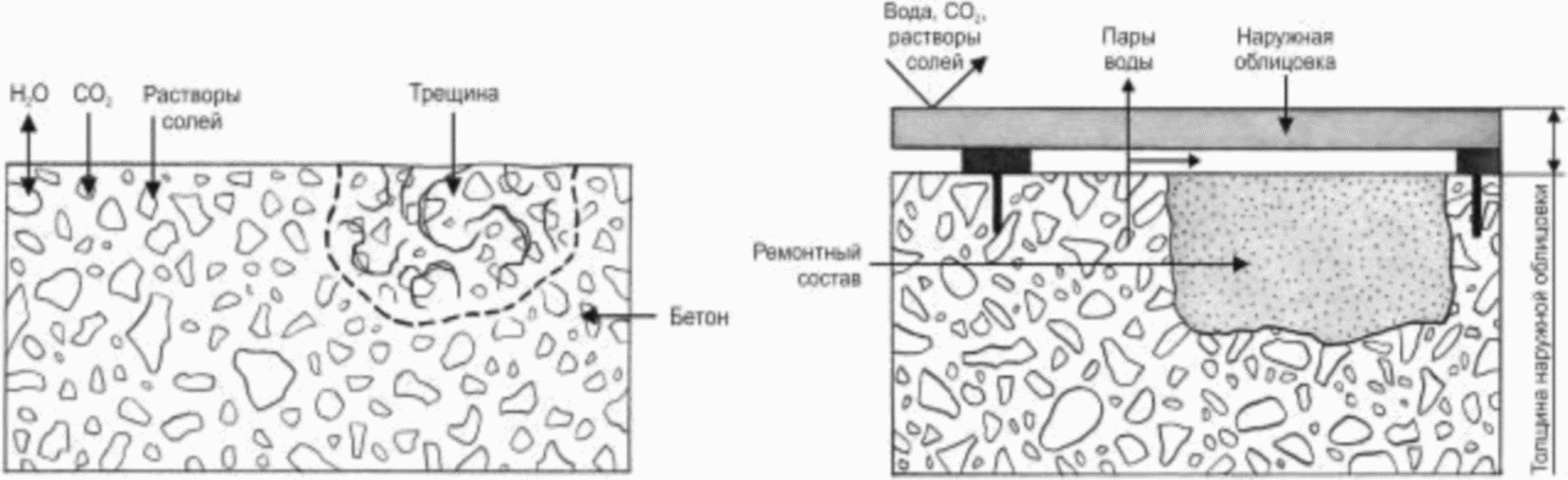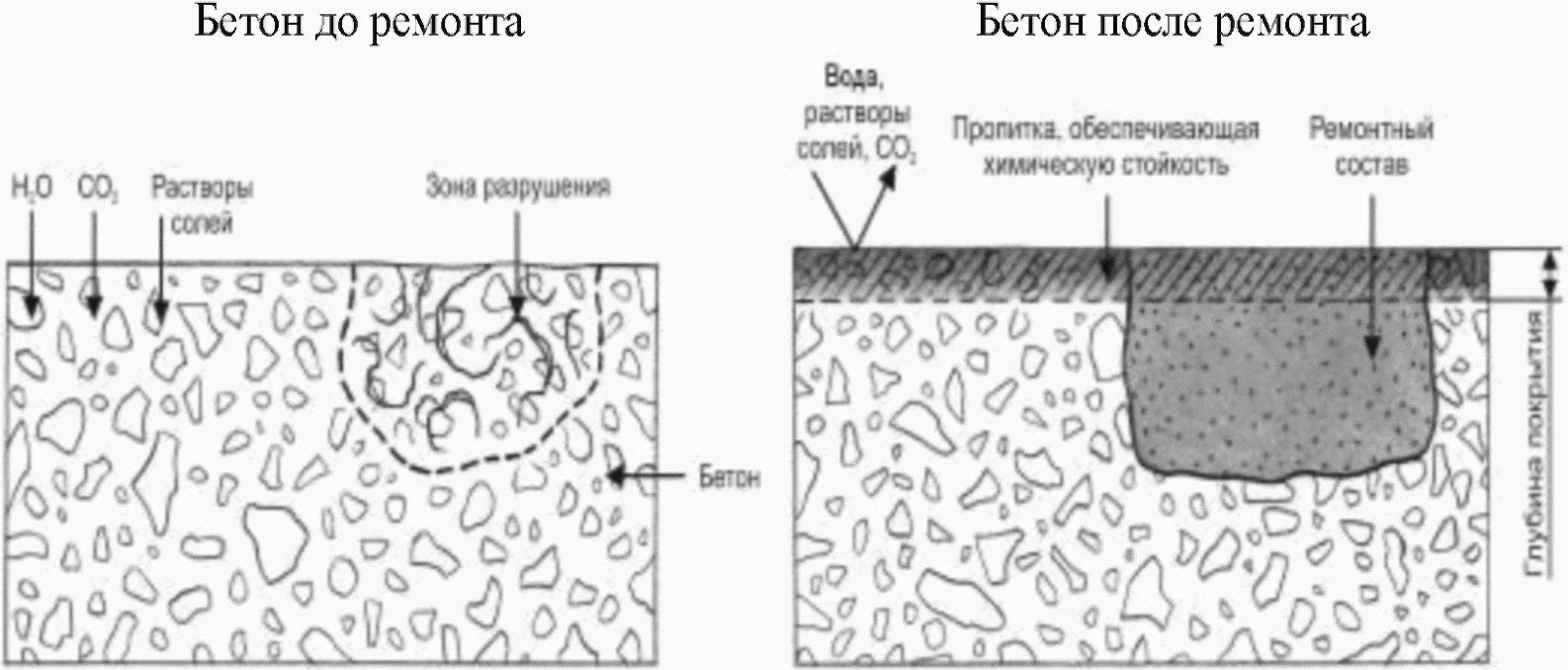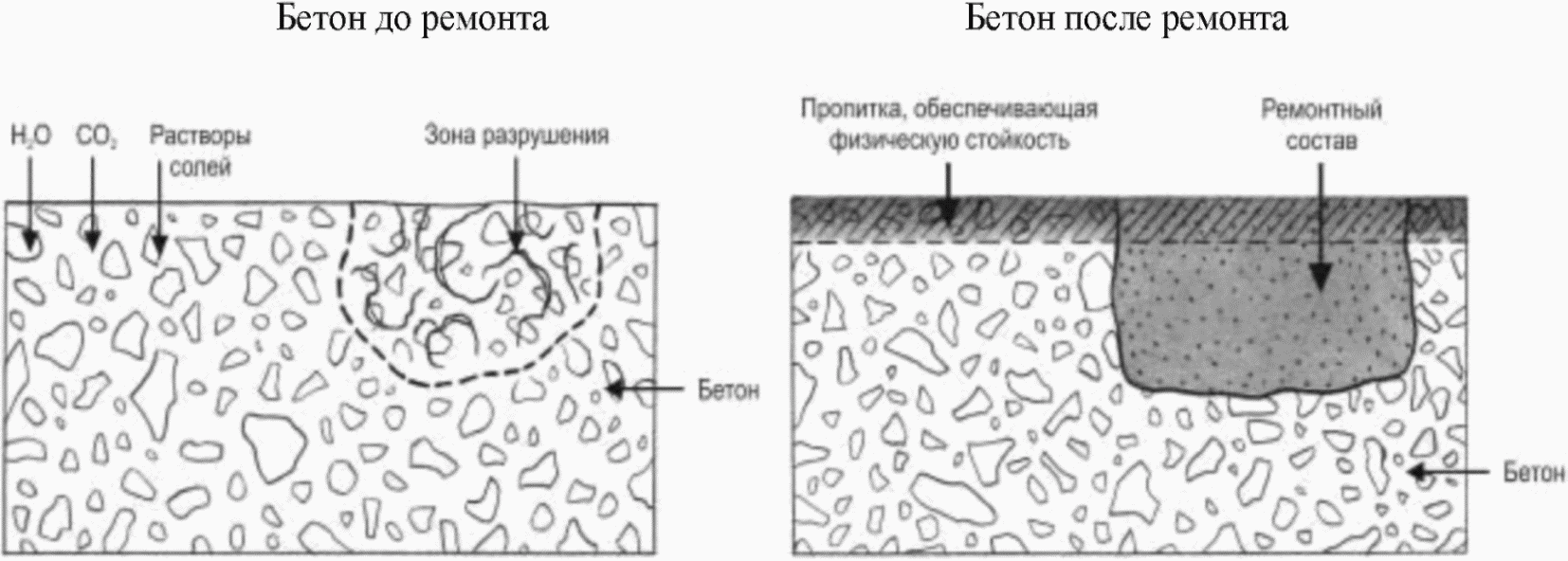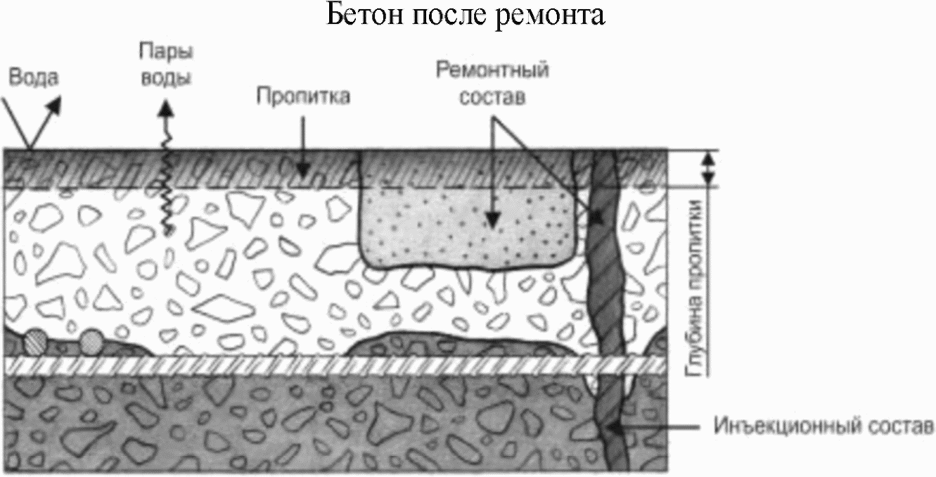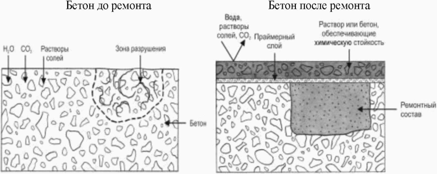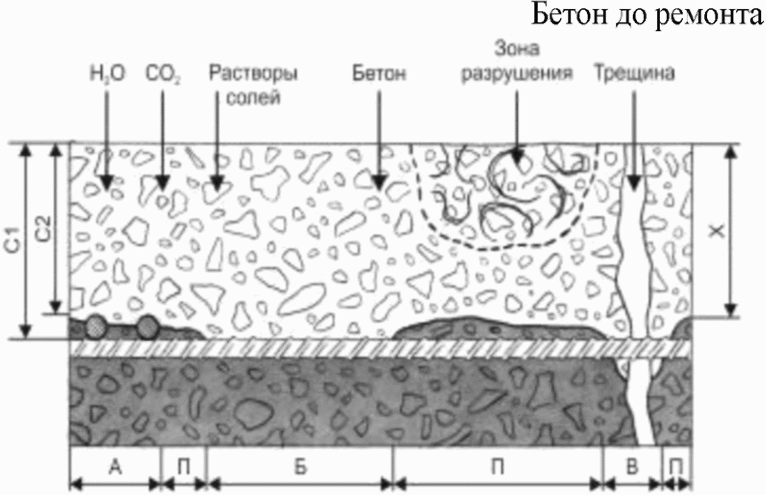 рисунке И.2. На участках с разрушенным бетоном выполняется его восстановление и уплотнение трещин.