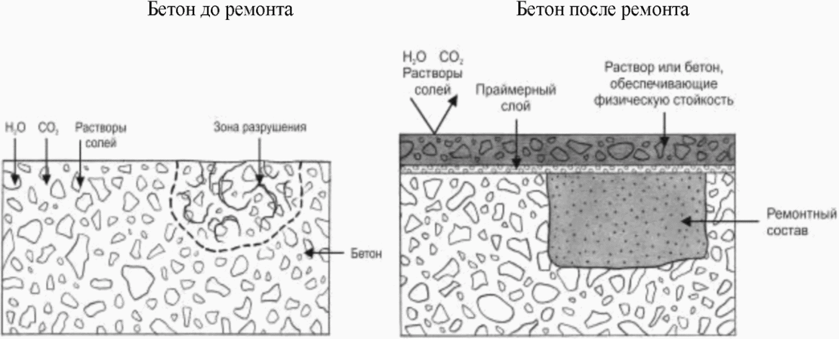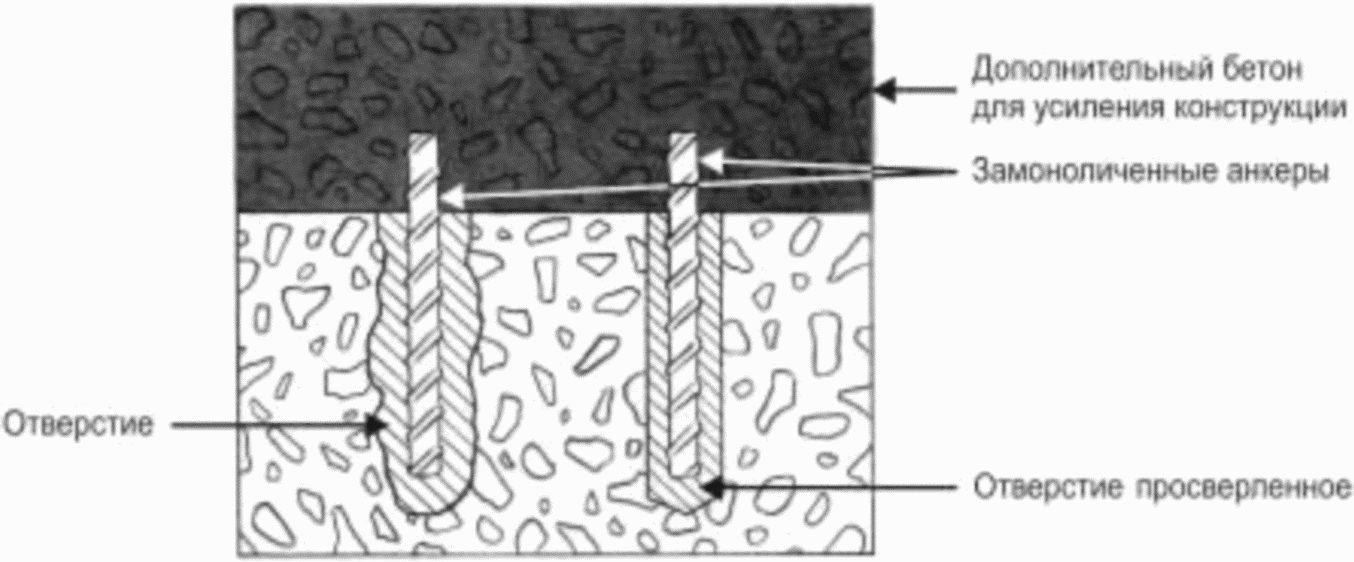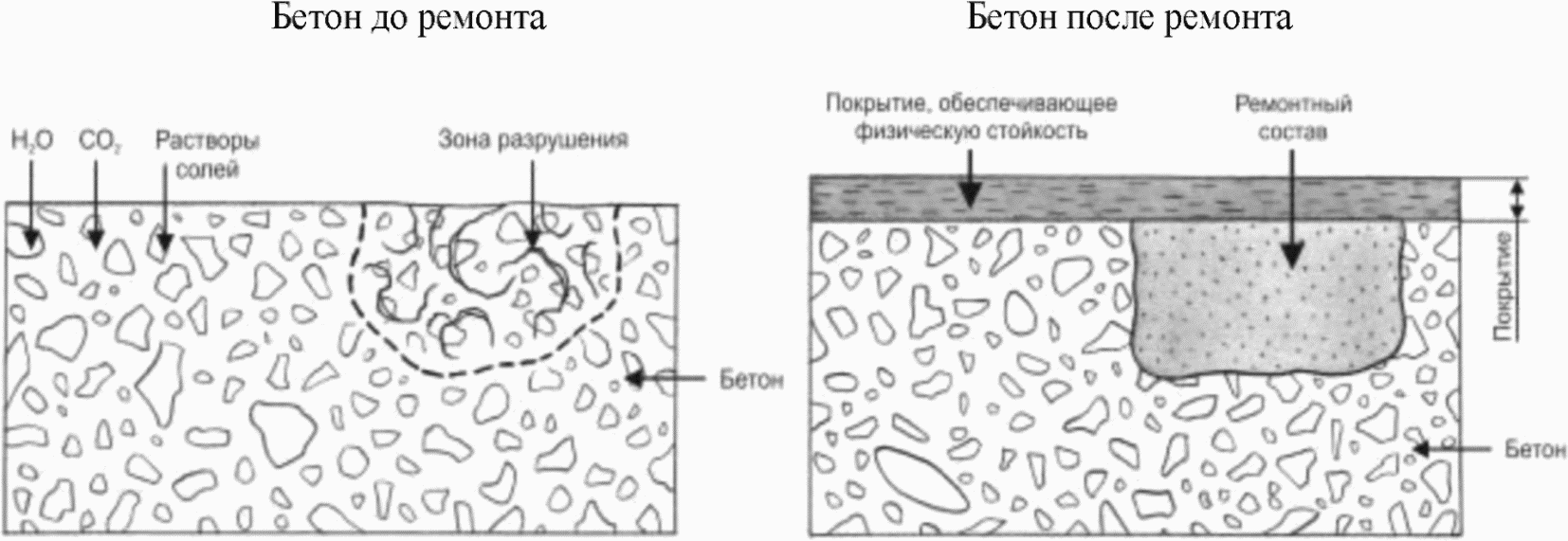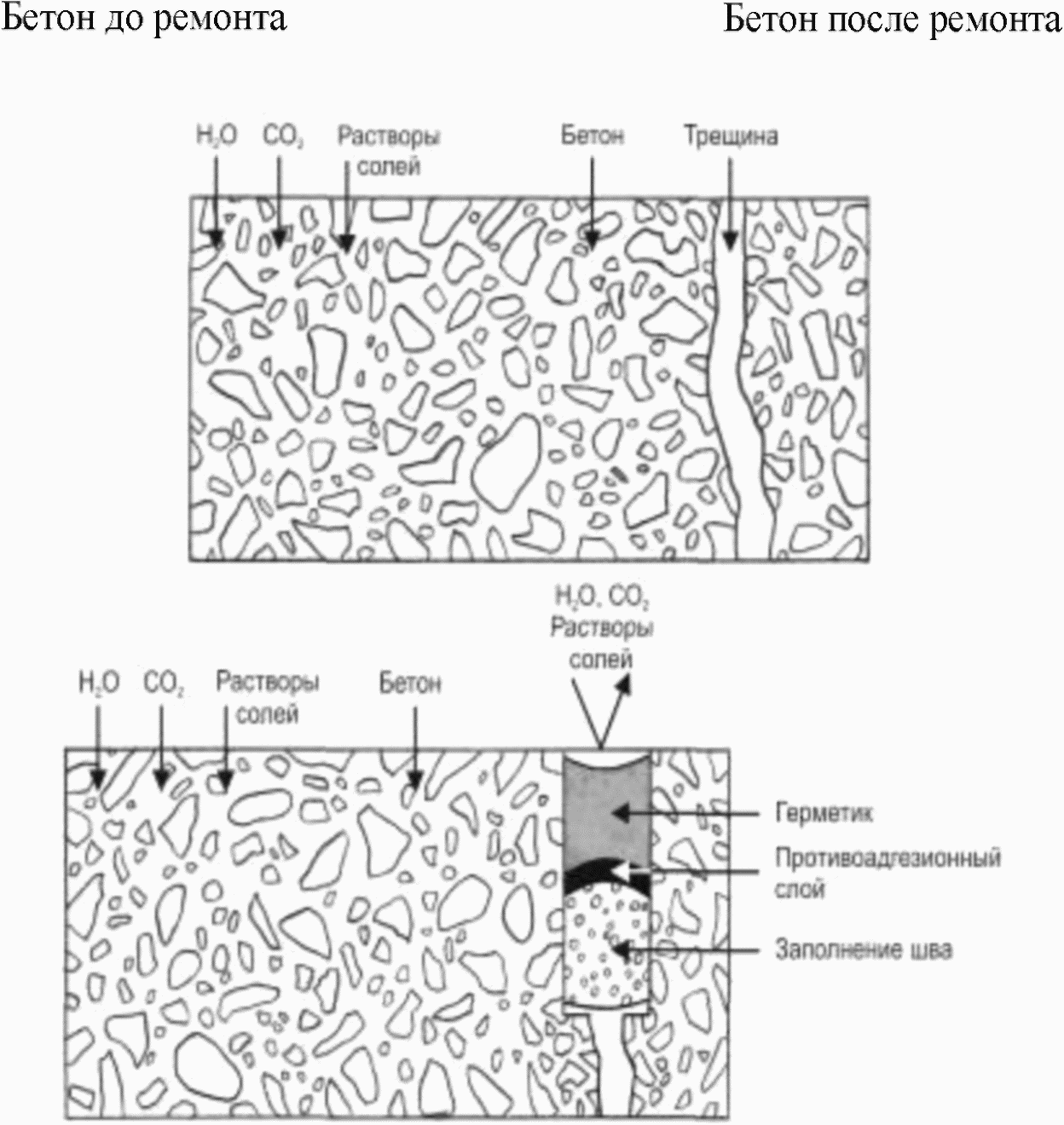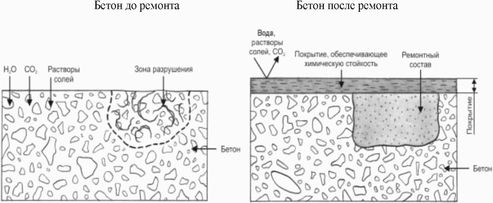 рисунке И.2. На участках с разрушенным бетоном выполняется его восстановление и уплотнение трещин.