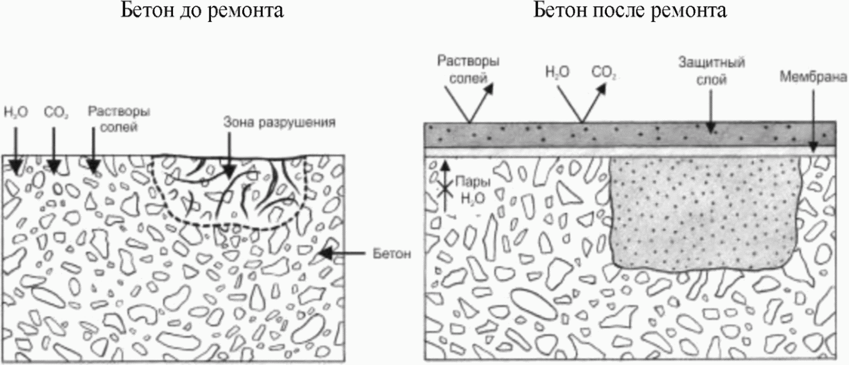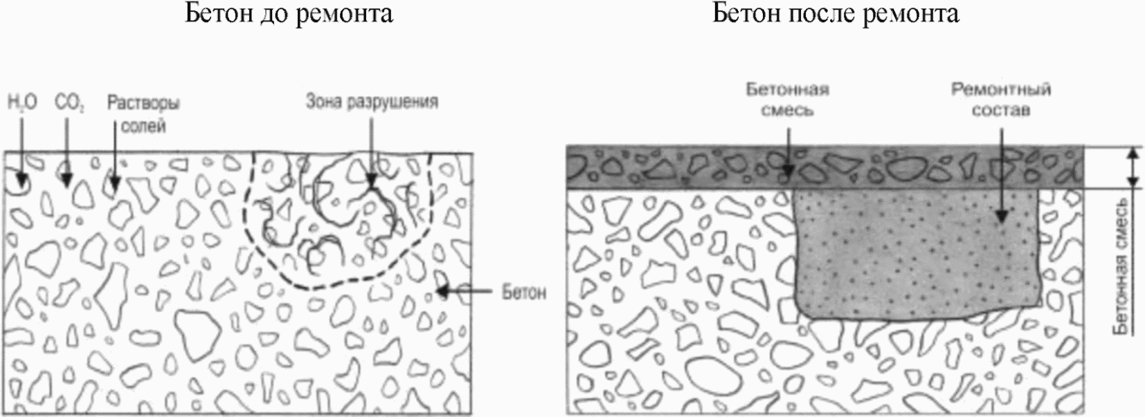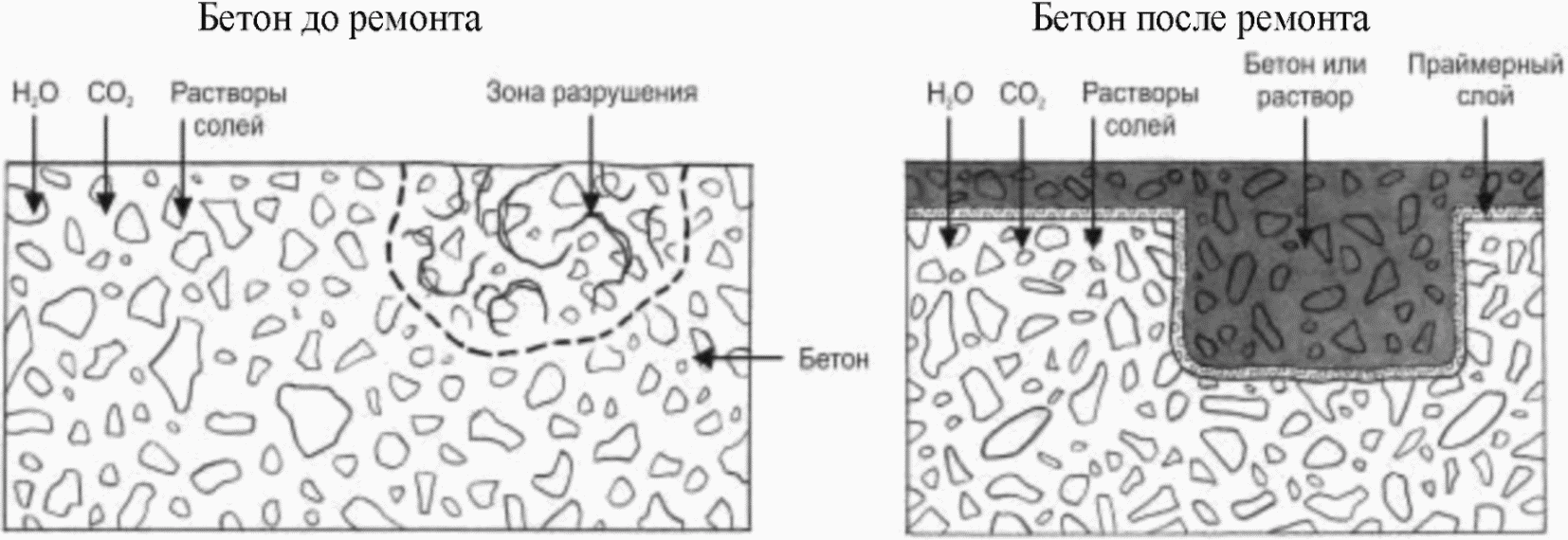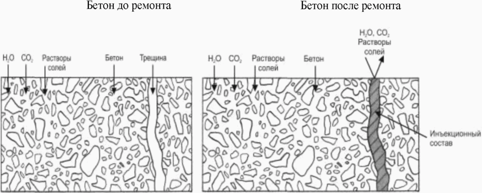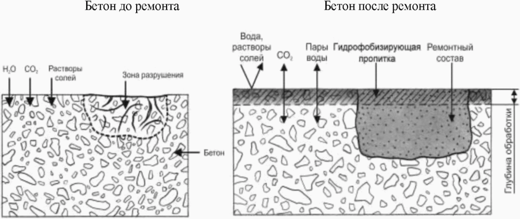 рисунке И.2. На участках с разрушенным бетоном выполняется его восстановление и уплотнение трещин.