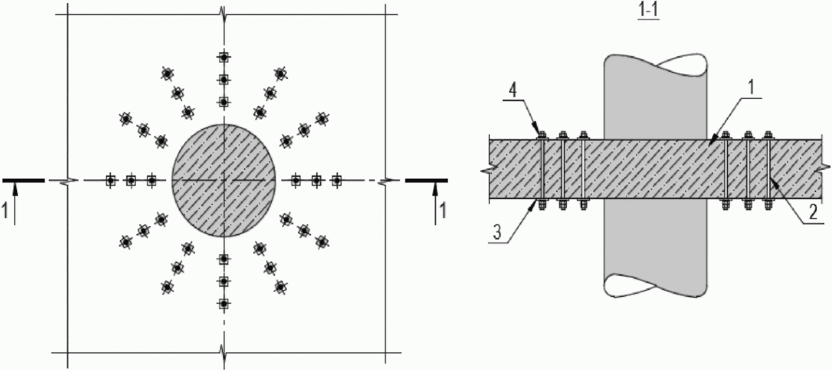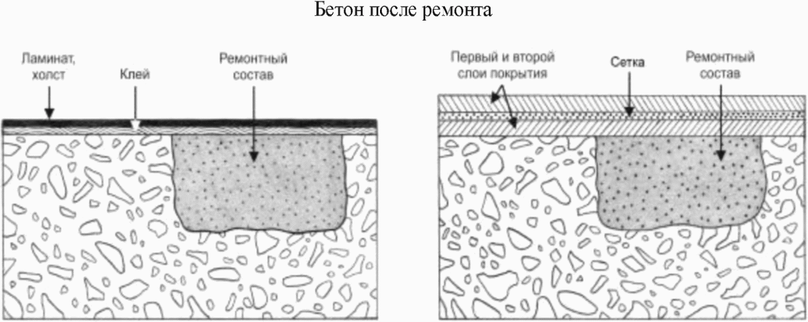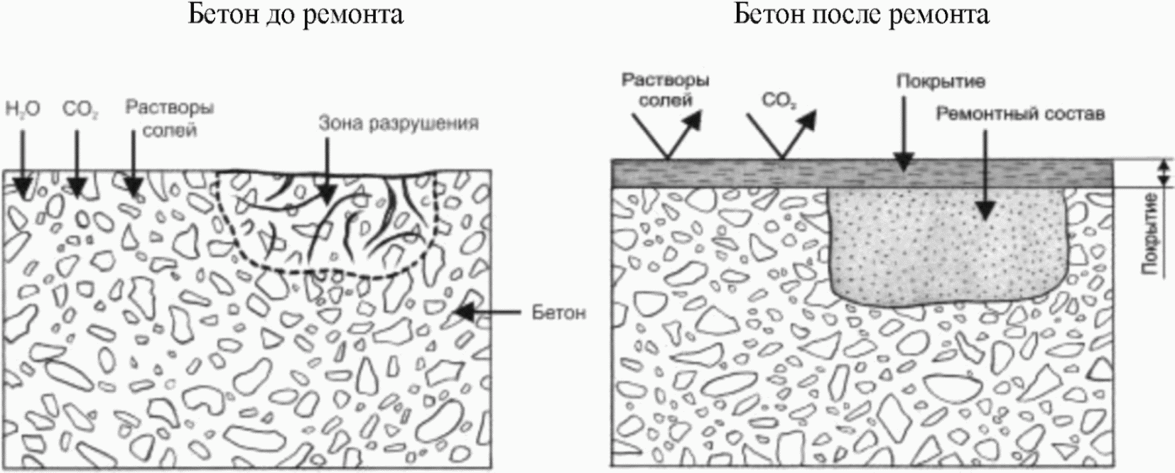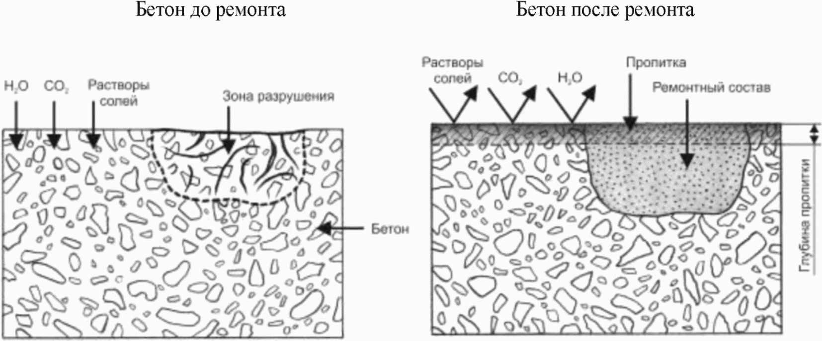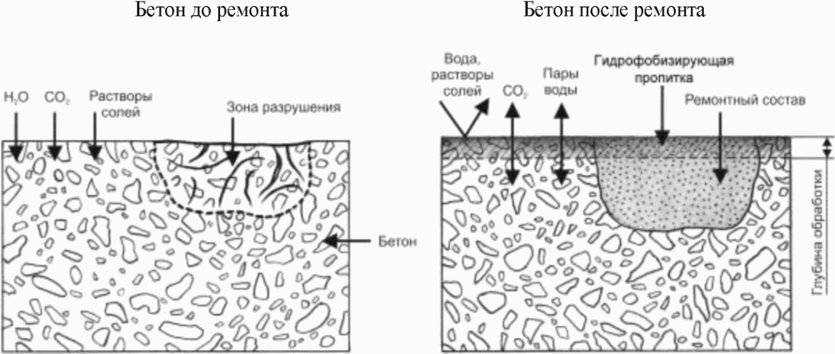 рисунке И.2. На участках с разрушенным бетоном выполняется его восстановление и уплотнение трещин.