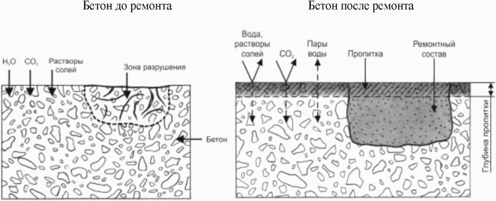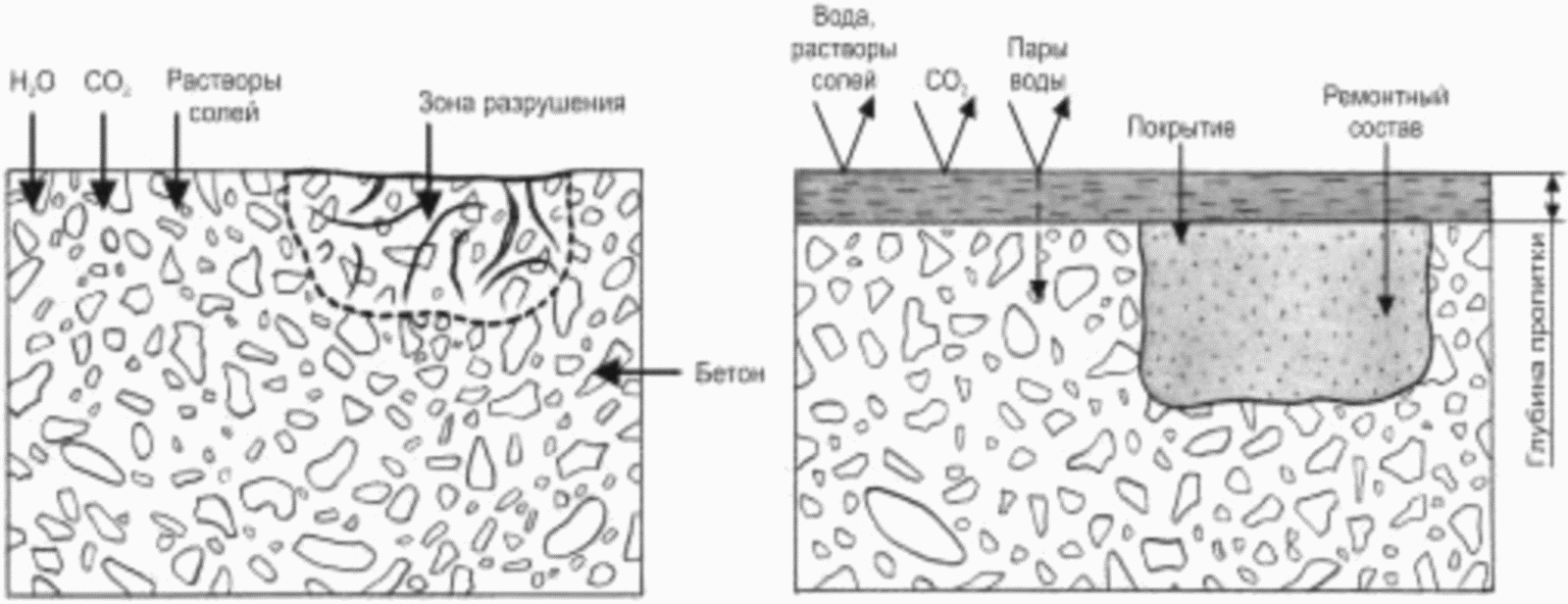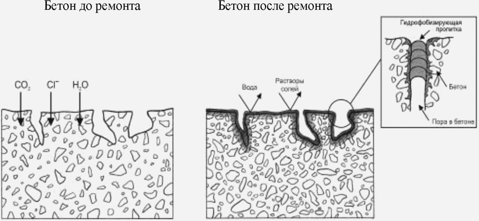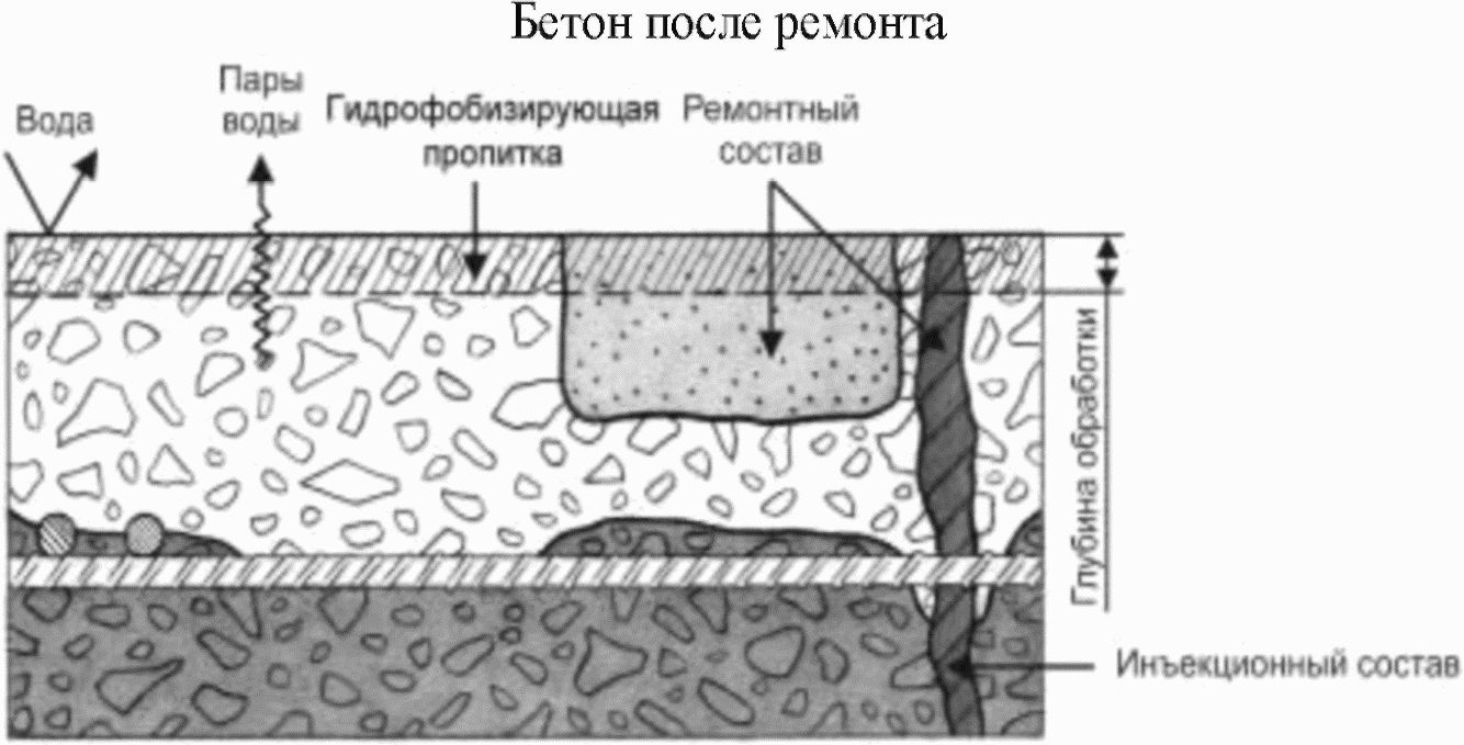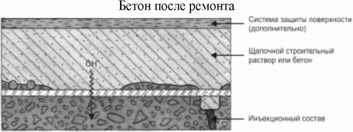 (метод 8.2) обеспечивает заполнение пор в поверхностном слое бетона для снижения содержания воды, повышение удельного сопротивления бетона и снижение скорости коррозии арматуры.