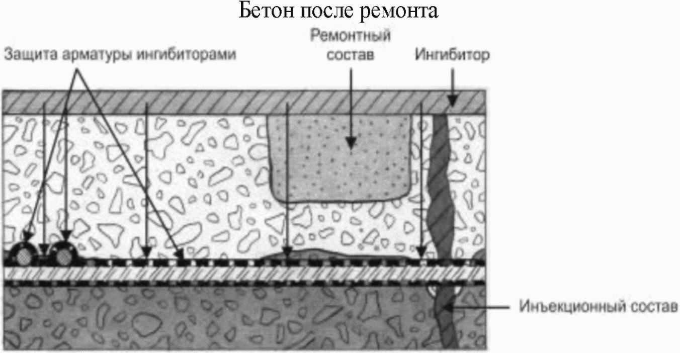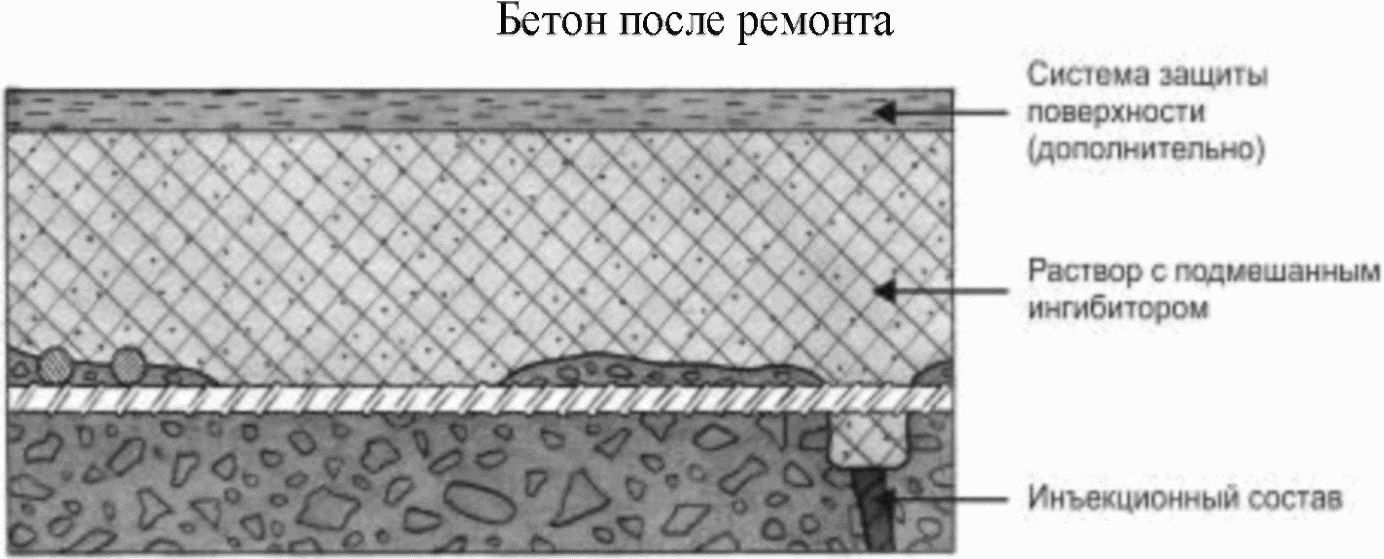 К.4). Ингибиторы наносят на поверхность бетона (метод 9.3-1) или смешивают с ремонтными растворами (метод 9.3-2).