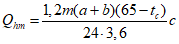 где 1,2 - коэффициент, учитывающий теплоотдачу в помещения от трубопроводов системы горячего водоснабжения (отопление ванной комнаты, сушка белья);