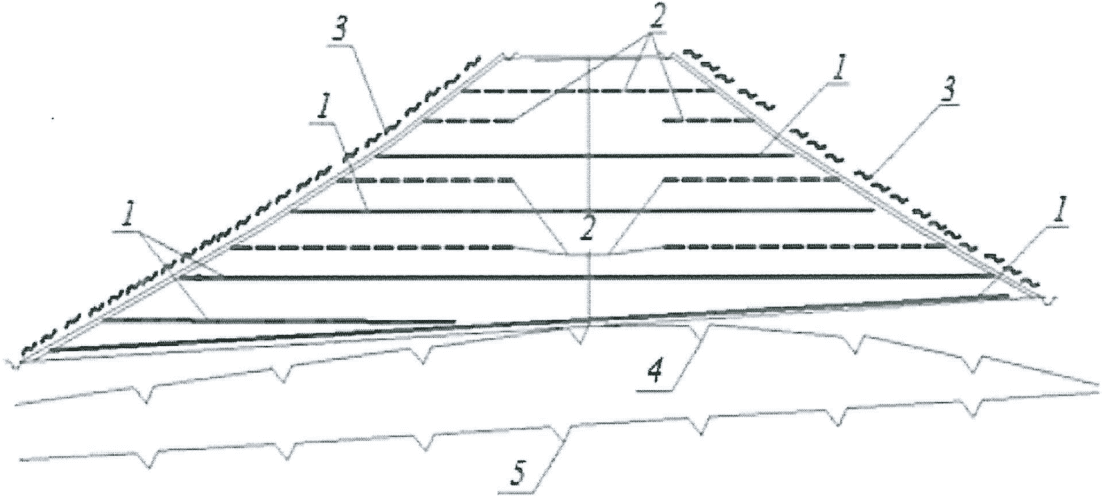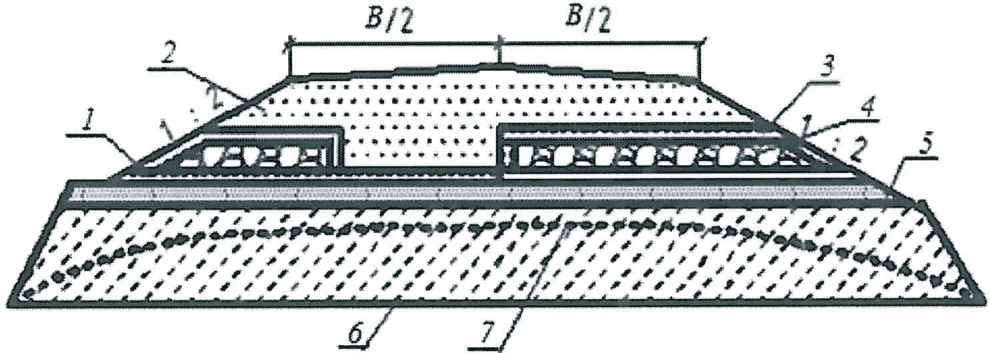 1 - грунт насыпи; 2 - геотехнические замкнутые обоймы