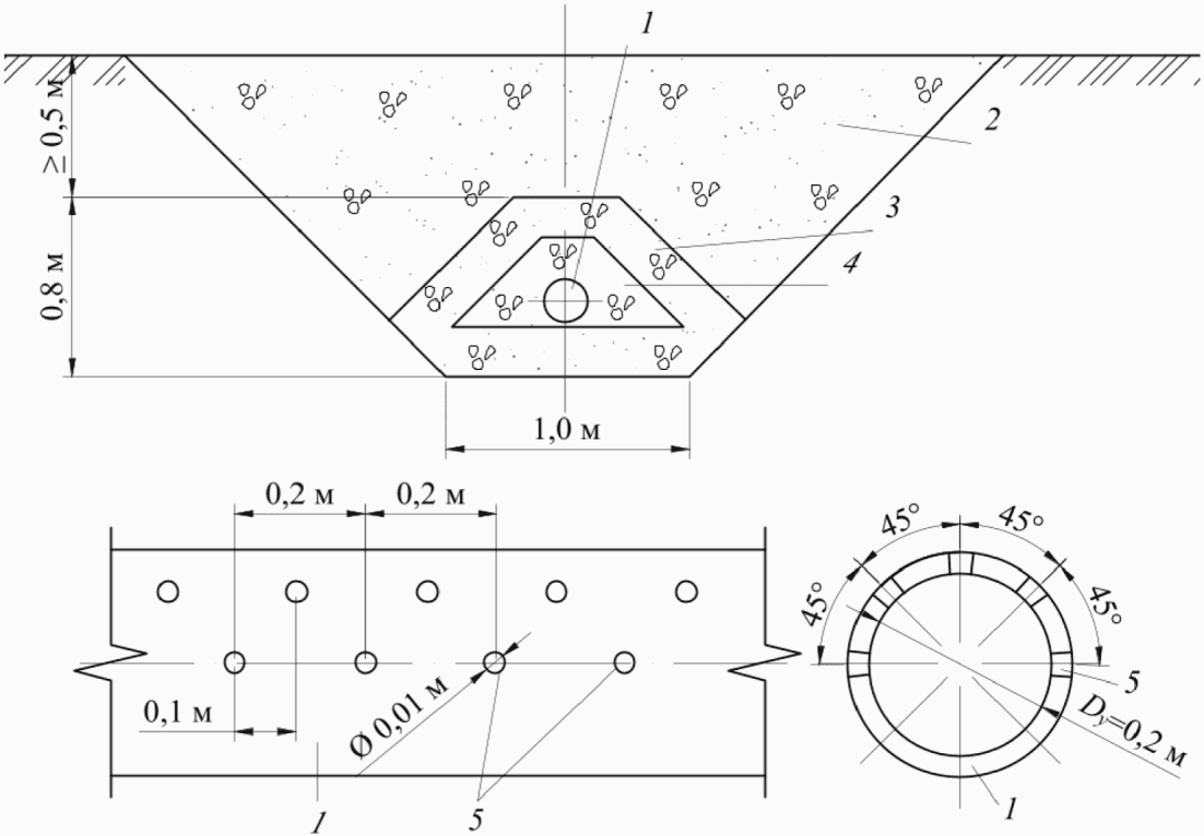 3.1.13 дренажная (фильтрационная) канава: Выемка для перехвата воды, фильтрующейся через обвалование карты намыва, и отвода за пределы сооружения.