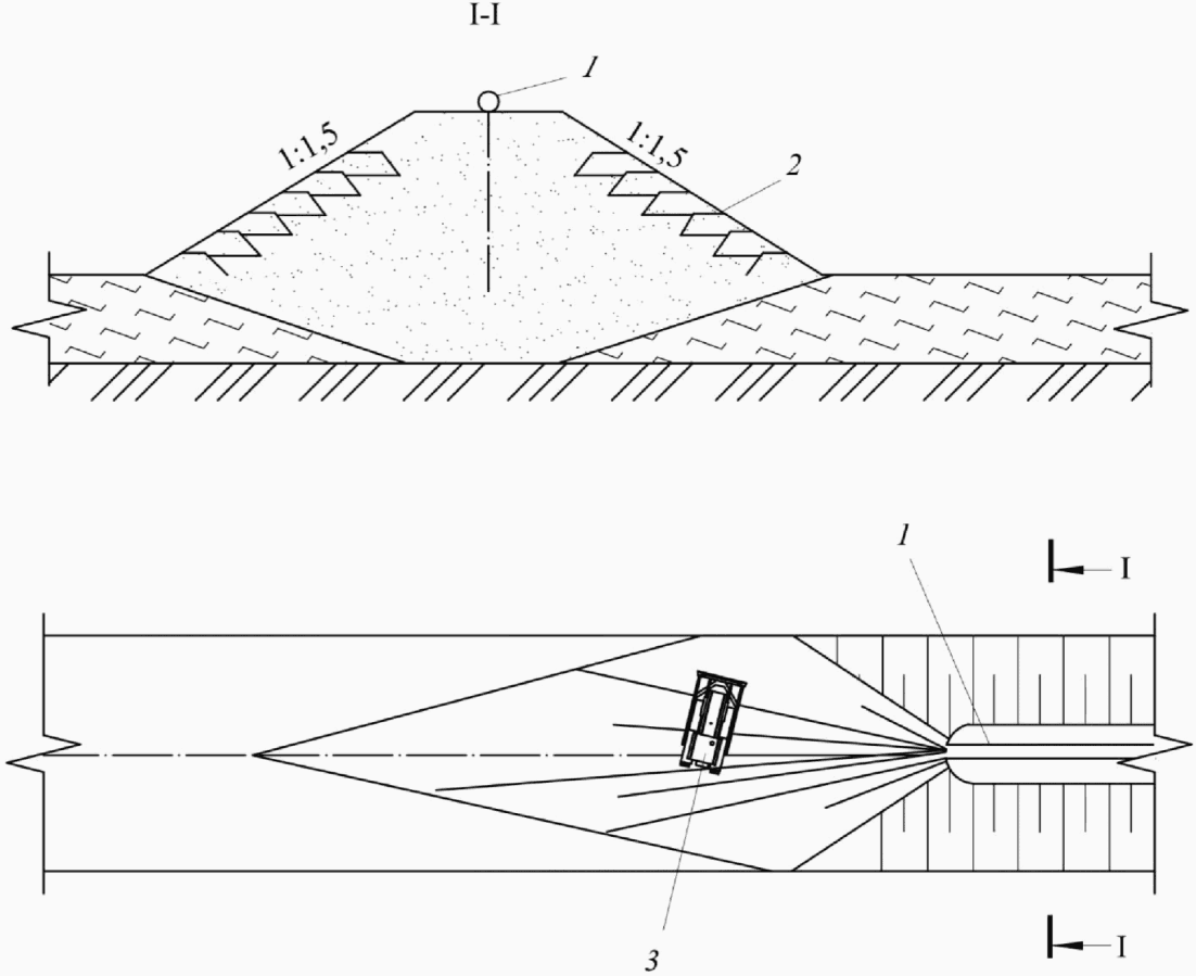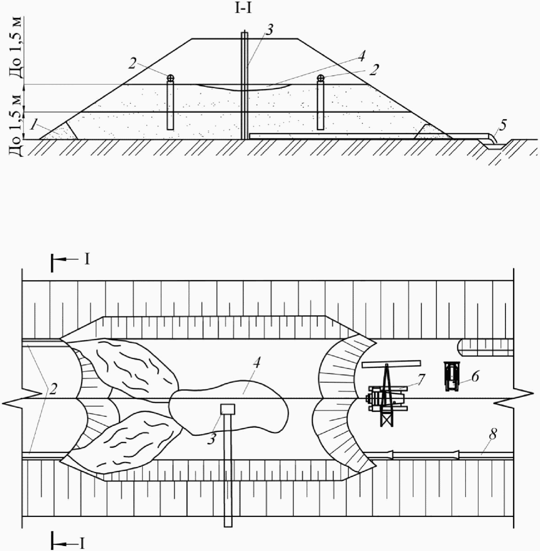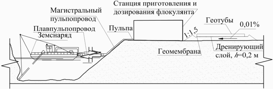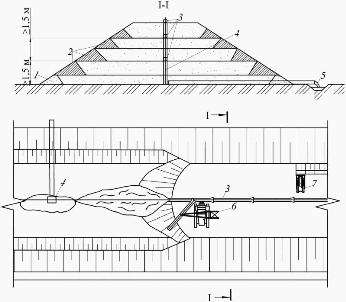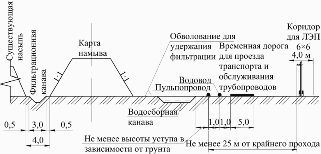3.1.2 водосбросная канава: Профильная выемка для отвода осветленной воды с карты намыва.
