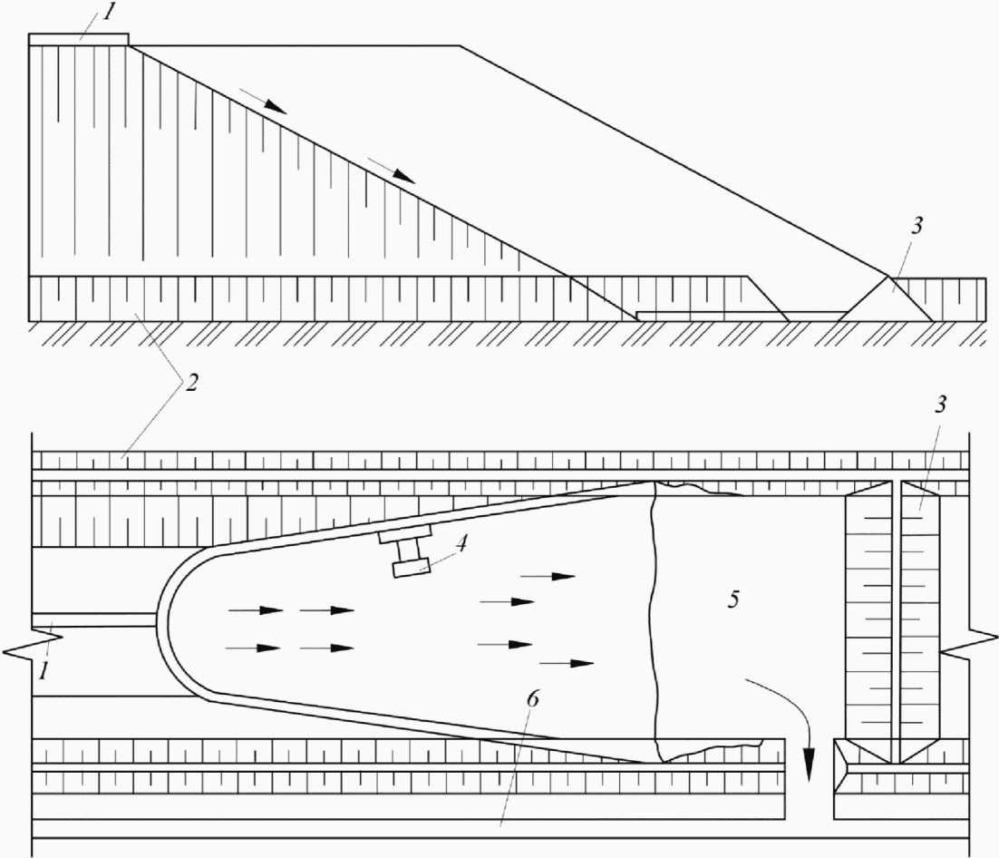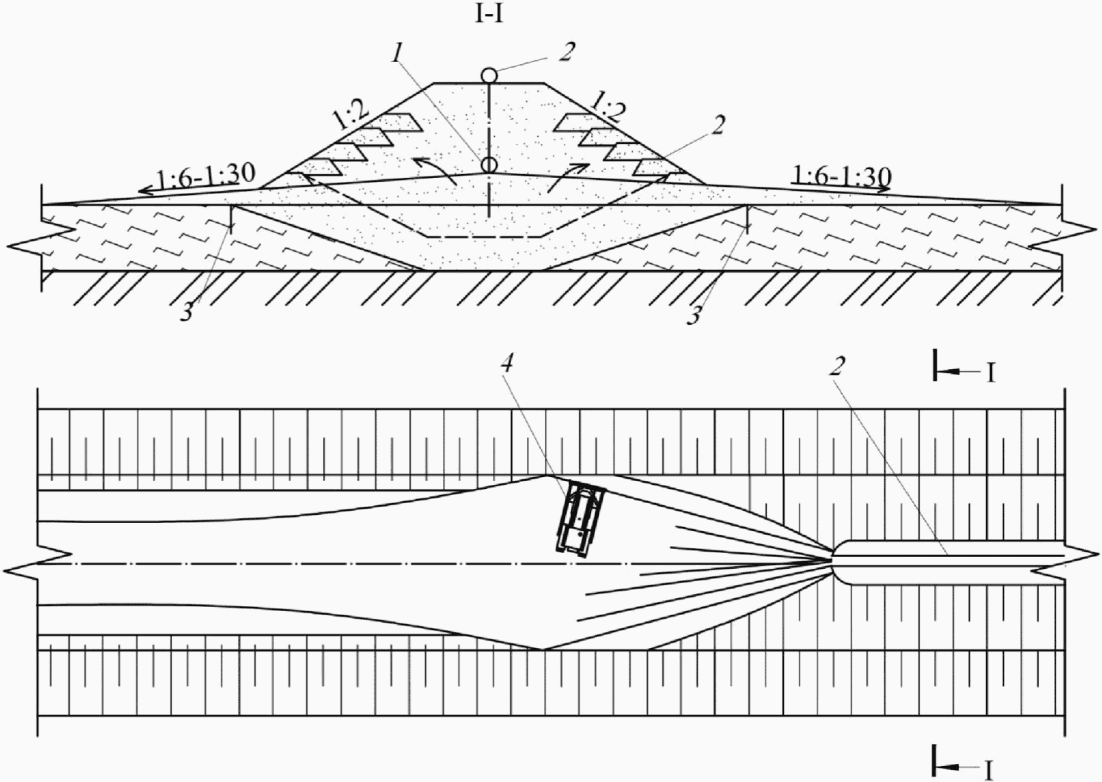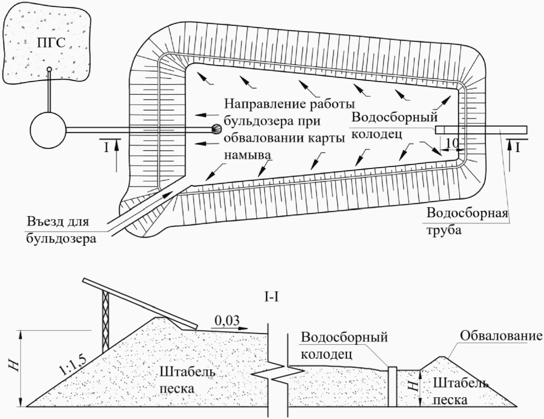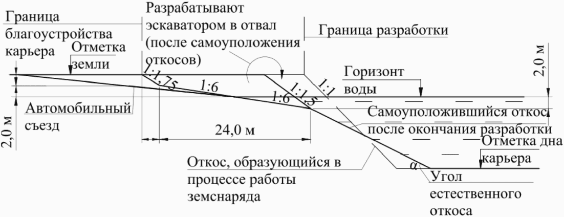 3.1.2 водосбросная канава: Профильная выемка для отвода осветленной воды с карты намыва.