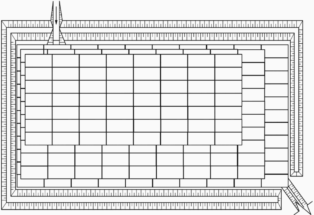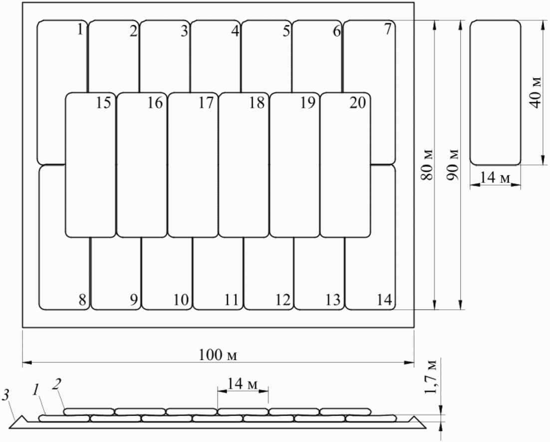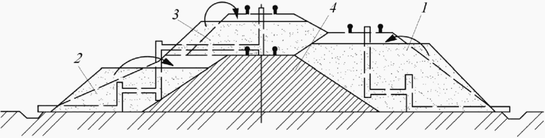 3.1.17 карта намыва: Земляное сооружение или часть его, оконтуренная дамбами обвалования, на которой происходит осаждение грунта из потока пульпы.