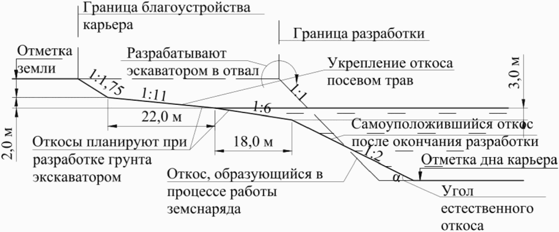 3.1.10 грунтовый карьер: Выемка, разрабатываемая в целях получения грунта для возведения земляного сооружения, не относящаяся к горнодобывающим предприятиям и объектам капитального строительства.