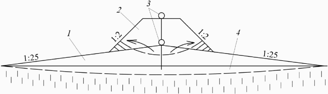S2 - величина запаса на осадку за счет пучения грунта основания (определяют по фактической глубине промерзания к моменту возведения насыпи), см;