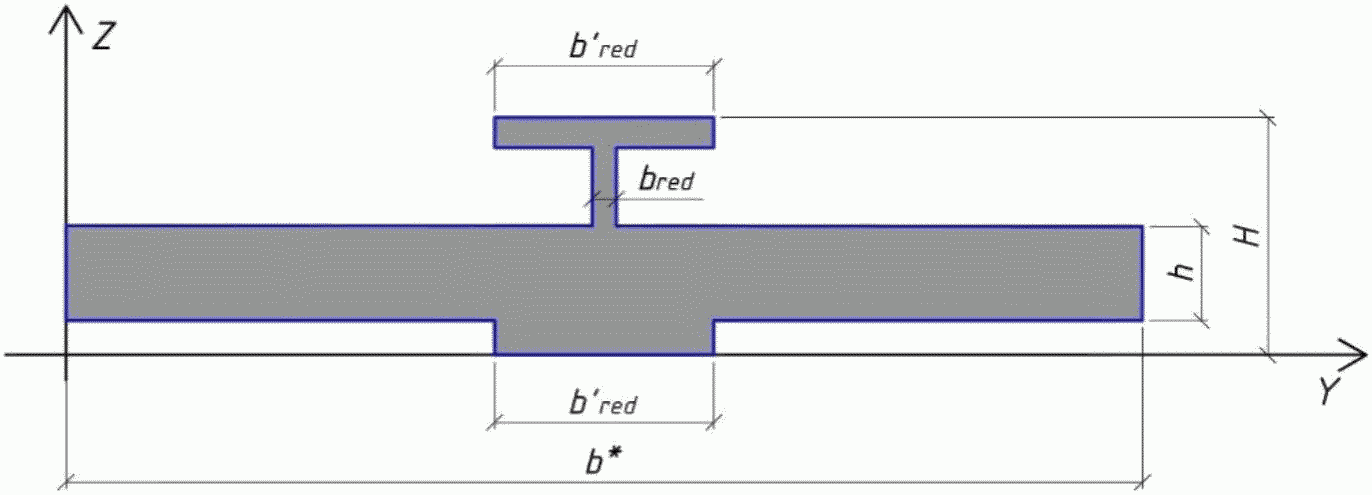 x, вычисленной из уравнения моментов внутренних сил в приведенном сечении относительно оси, проходящей через центр тяжести данного сечения с учетом коэффициента