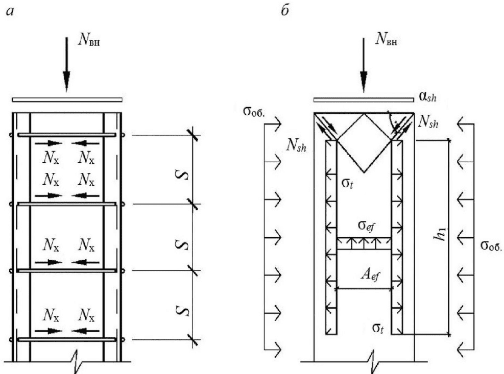 aэл, S - размер сечения сжатого элемента и шаг хомутов по высоте.