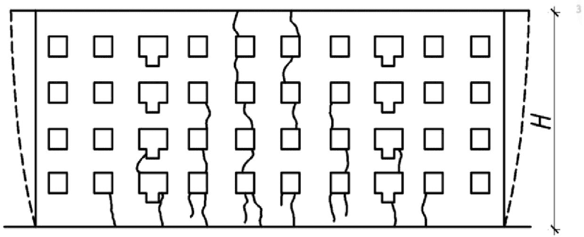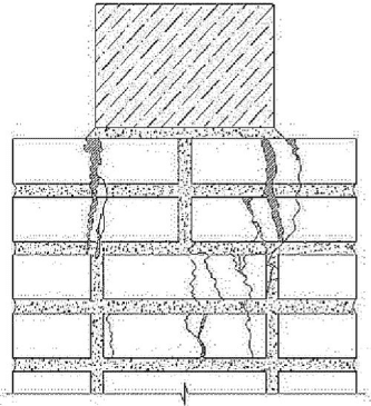 3.1.9 деформационные трещины: Трещины, возникшие преимущественно от деформационных воздействий - неравномерных осадок фундаментов, температурно-влажностных деформаций, разности деформаций разнозагруженных участков стен.