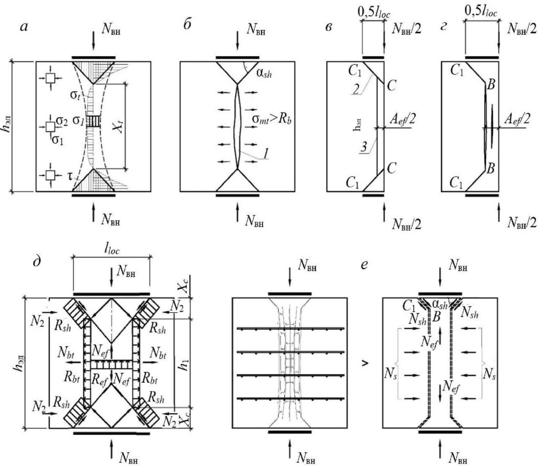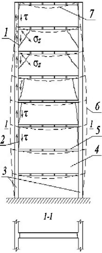 - соотношение площадей сечения растянутой зоны и поясов обоймы в пределах ее высоты;