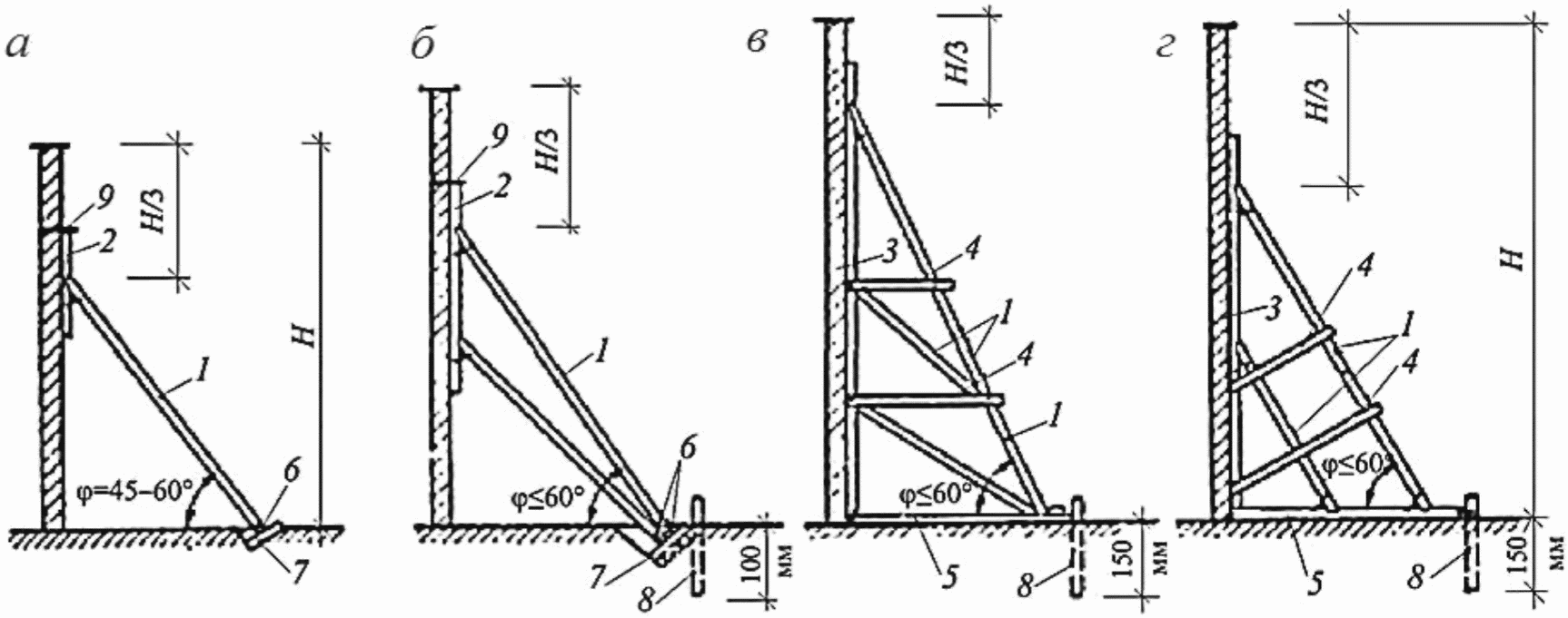 - угол наклона поверхностей сдвига в приопорных зонах, определяемый по