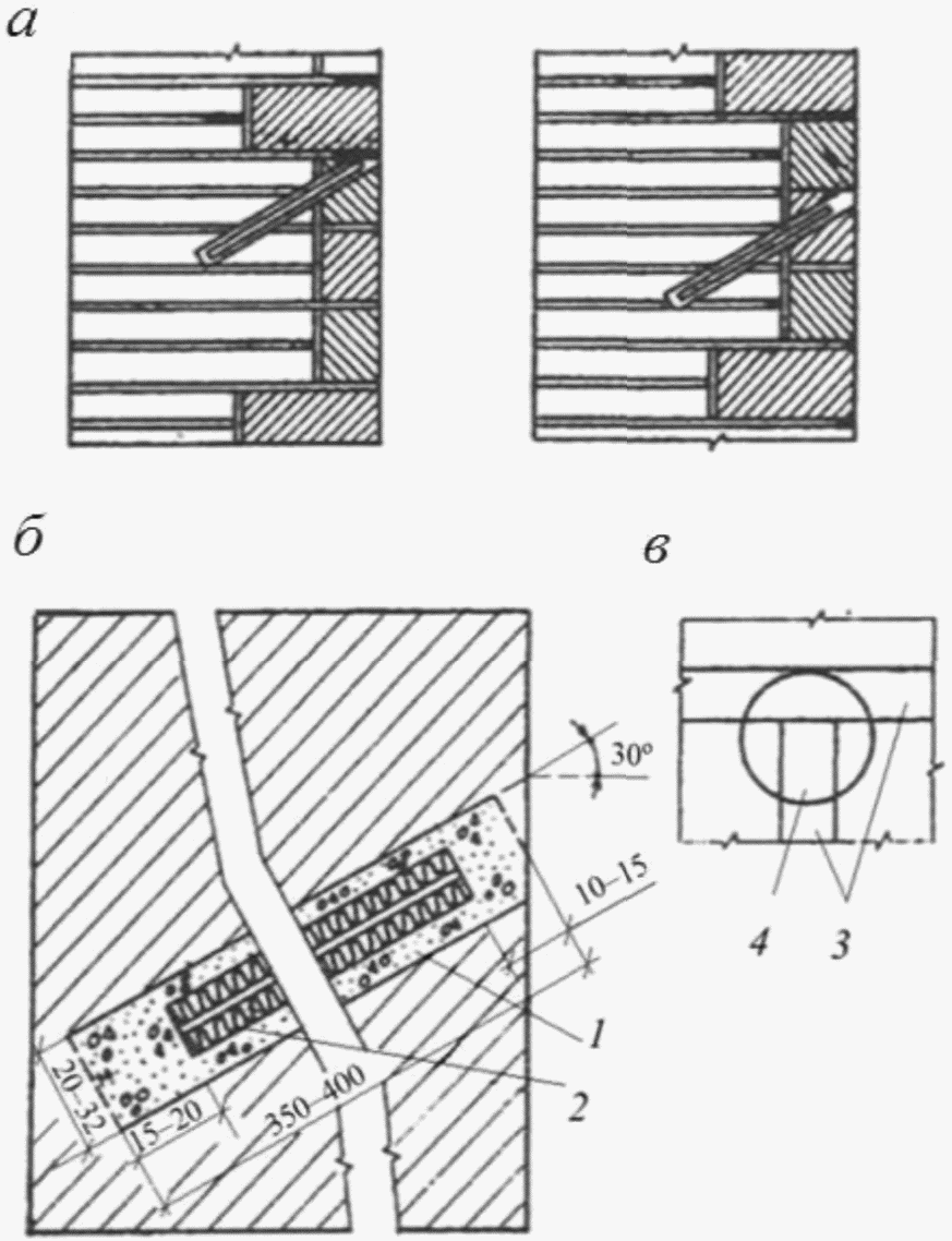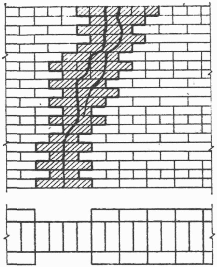 3.1.8 вычинка: Восстановление кладки на участках ее разрушения новой кладкой с перевязкой со старой.