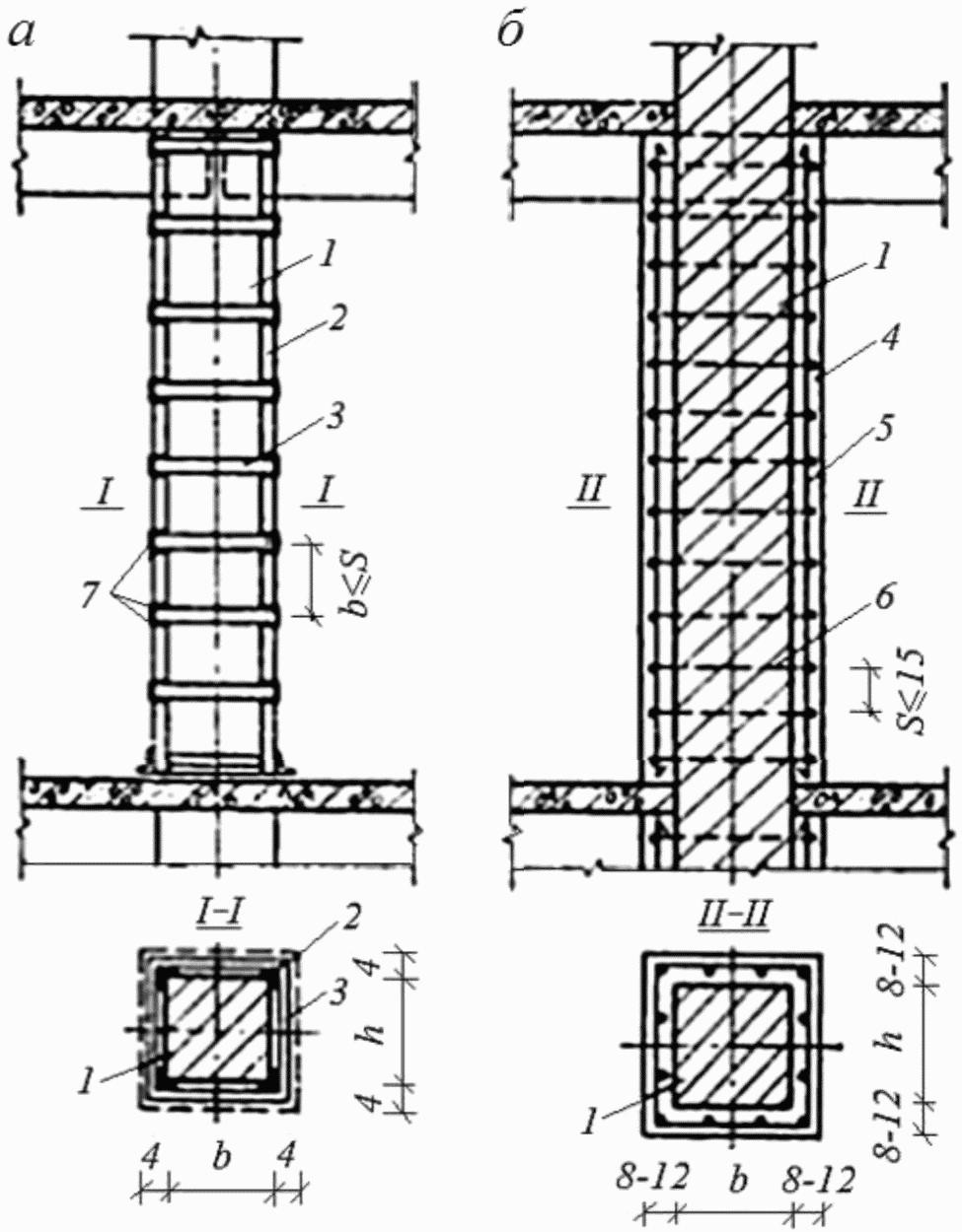 aэл, S - размер сечения сжатого элемента и шаг хомутов обоймы по высоте.