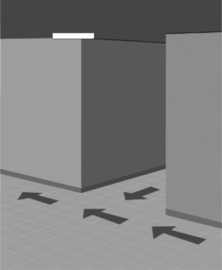 9.11.7 Световые указатели направления движения автомобилей устанавливаются на высотах 2,0 и 0,5 м от пола в пределах прямой видимости из любой точки на путях эвакуации и проездов для автомобилей.