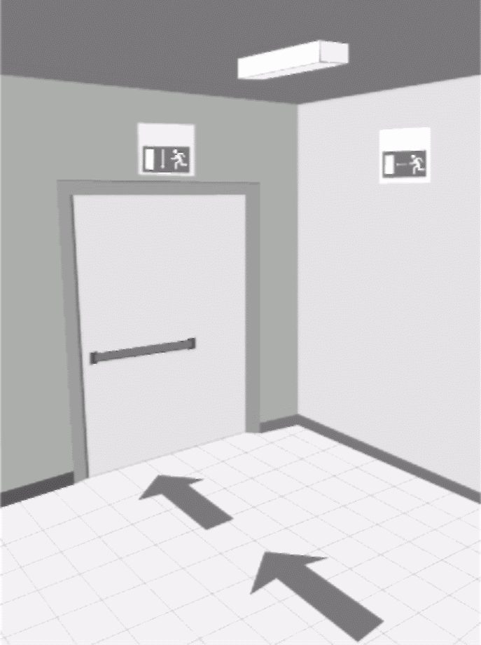3.18 система указания пути эвакуации: Система, обеспечивающая достаточное число знаков безопасности, позволяющих людям эвакуироваться из места расположения в случае возникновения пожара или чрезвычайной ситуации по установленному пути эвакуации.