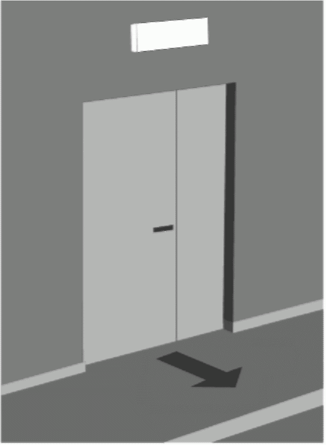 9.13.10 Дополнительно целесообразно устанавливать вокруг двери эвакуационного выхода сигнальные огни зеленого цвета, включаемые в аварийной ситуации и работающие в пульсирующем режиме для привлечения внимания эвакуируемых людей. Пример расположения сигнальных огней показан на рисунке 9.2.