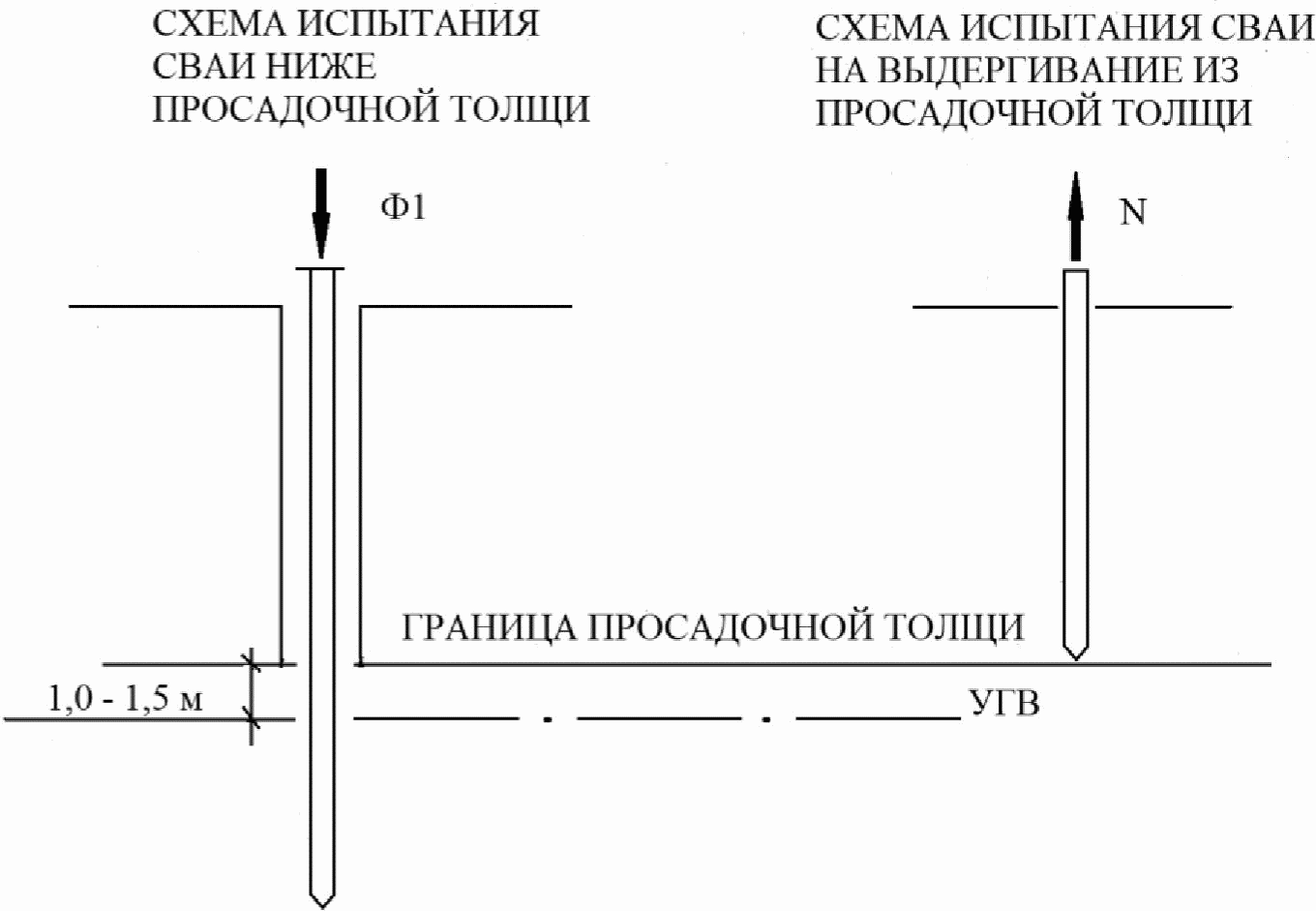 ниже просадочной толщи; N - сила на выдергивание сваи