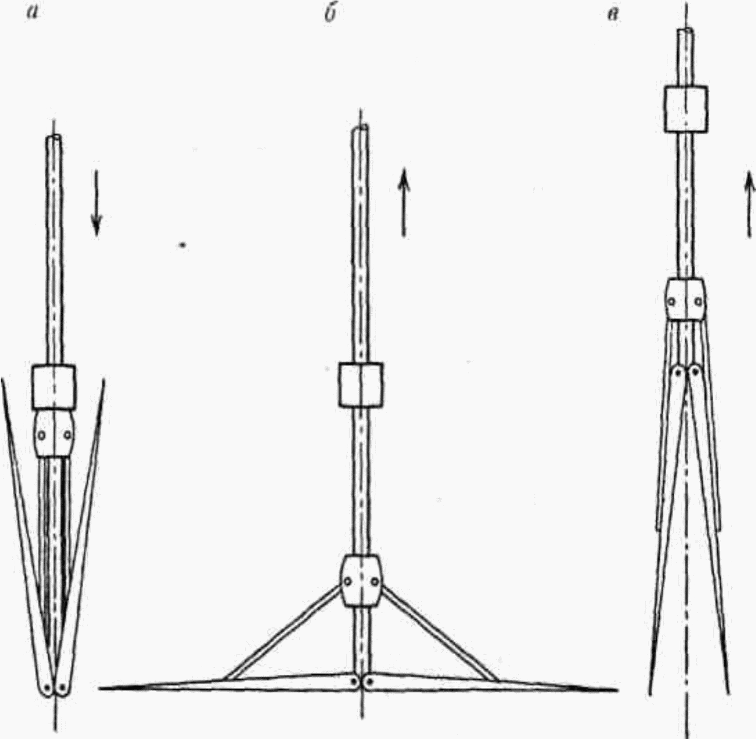 в - положение при холостом подъеме, после встречи прочных