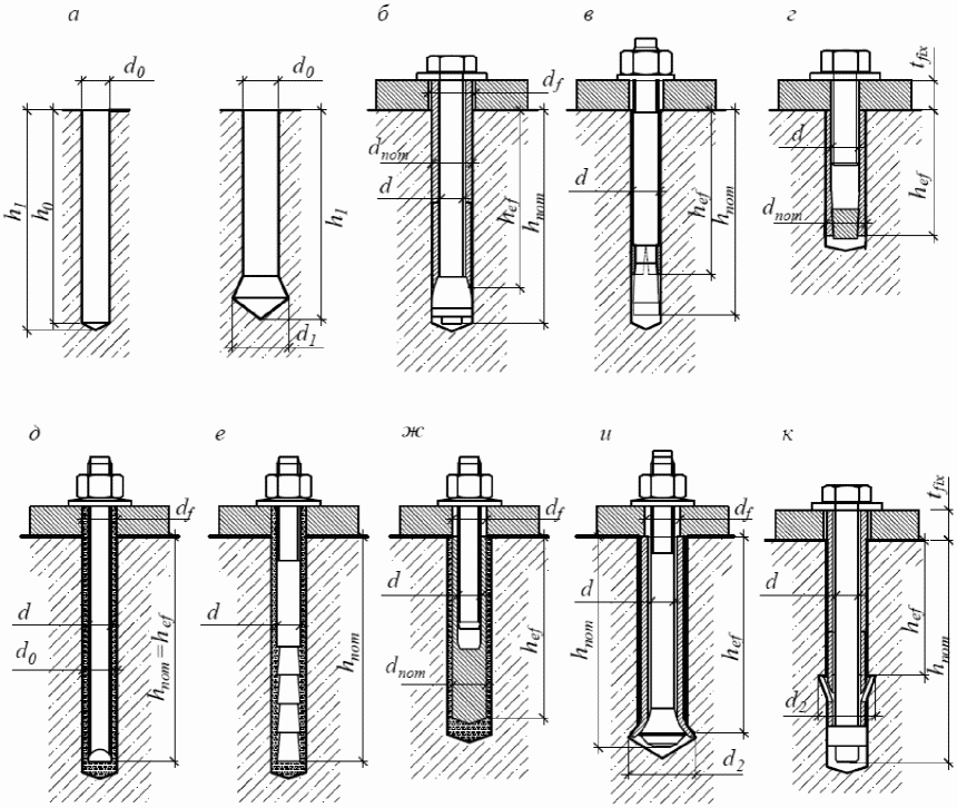 dnom - внешний диаметр механического и стального элемента клеевого анкера (номинальный диаметр для стержневой арматуры);