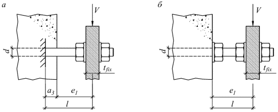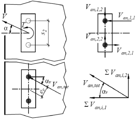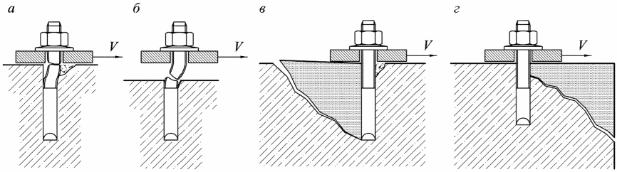 V - сдвигающая сила, действующая перпендикулярно оси анкера;