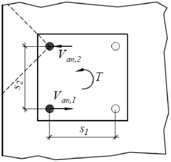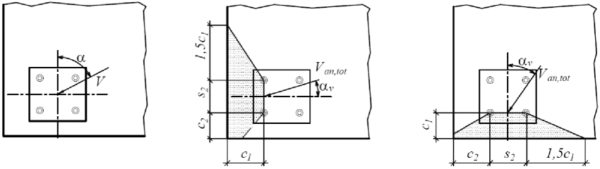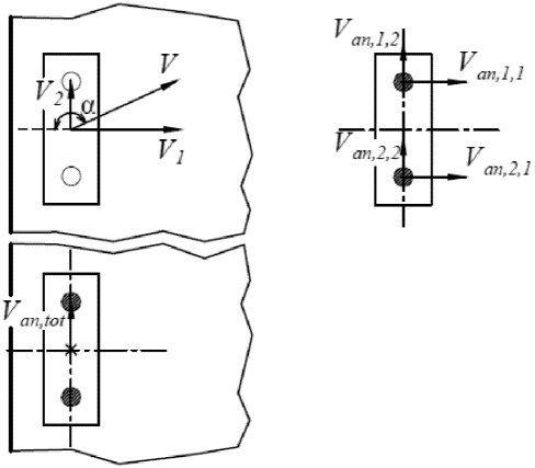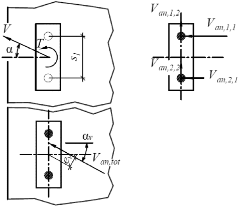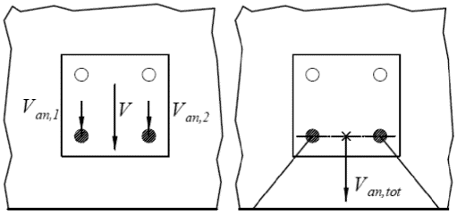 где Van - расчетные значения сдвигающего усилия в анкере или анкерной группе (Van,tot), устанавливаемые при расчетах в зависимости от механизма разрушения;
