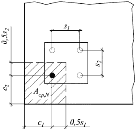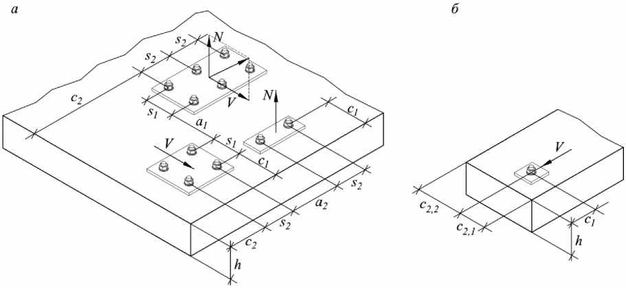 c1 - расстояние от оси анкера до края основания в направлении 1 (для анкера, работающего на сдвиг, направление 1 выбирают перпендикулярно краю в направлении сдвигающего усилия);