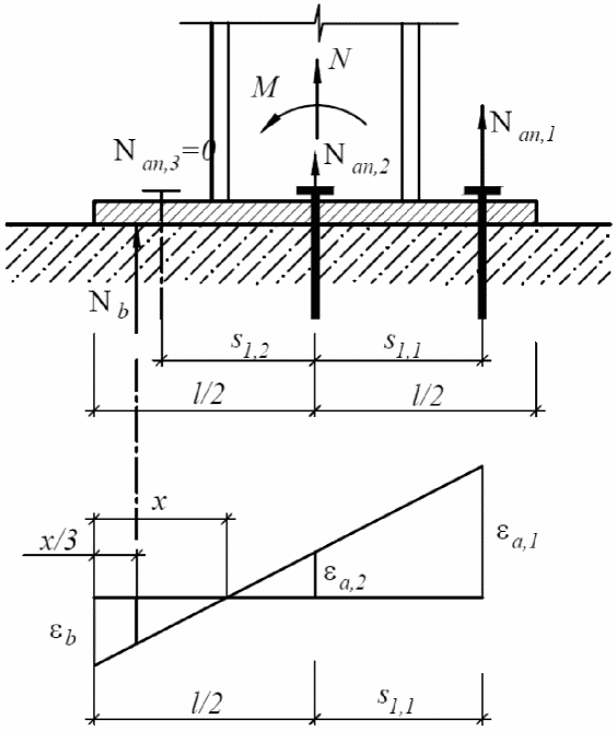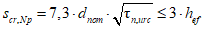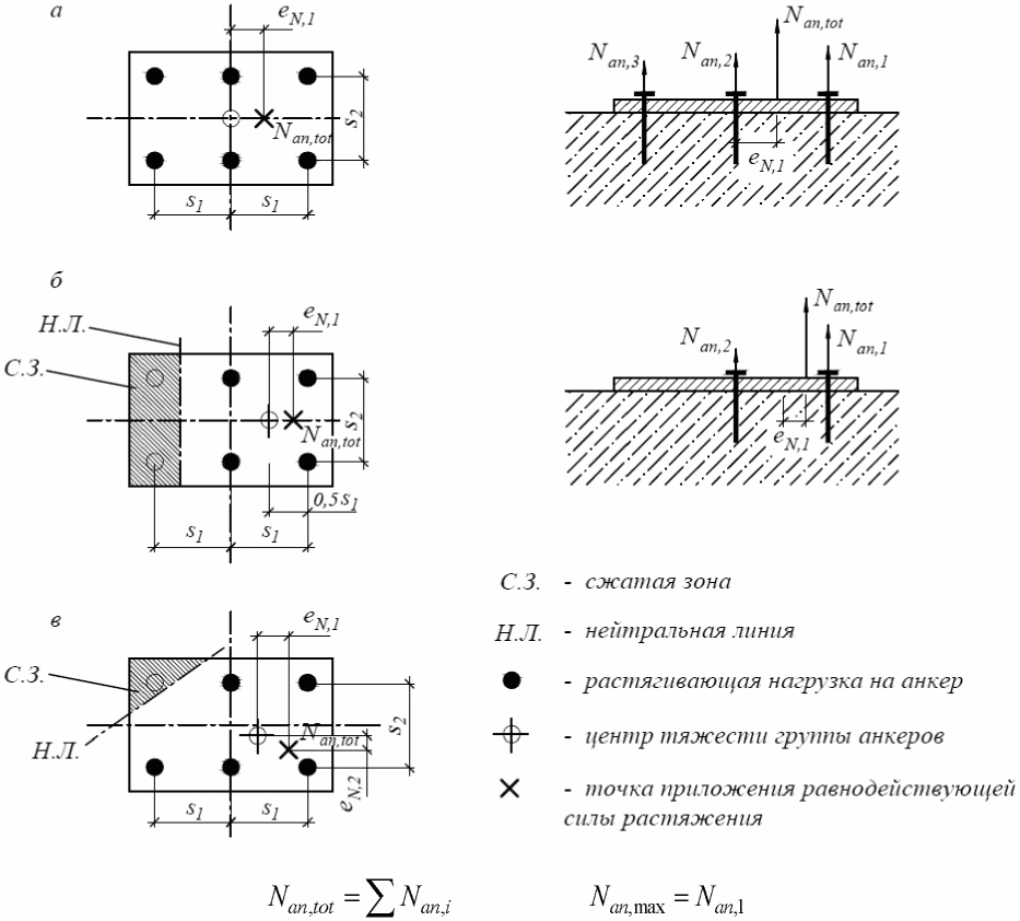 где Nan - расчетные значения растягивающего усилия в анкере или анкерной группе Nan,tot, устанавливаемые при расчетах в зависимости от механизма разрушения;