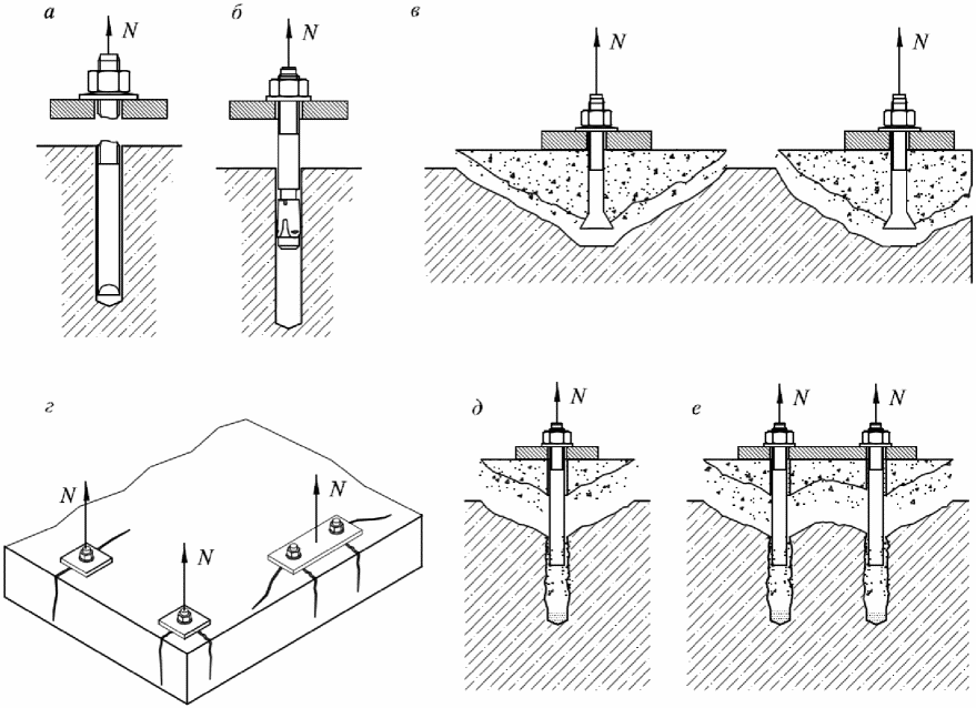 Все указанные выше величины принимаются по ТП в зависимости от типа и марки анкера, состояния основания, для которого предназначен анкер.